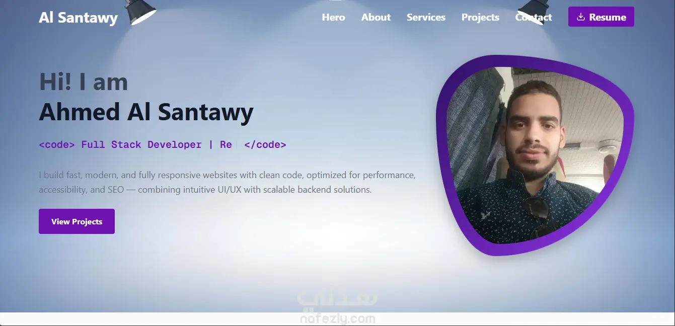 فكرة المشروع: موقع شخصي احترافي يهدف إلى إبراز الهوية المهنية الخاصة بي كمطور ويب متكامل (Full Stack Web Developer). صُمم الموقع ليكون واجهة عصرية وجذابة، تعكس خبرتي في بناء مواقع وتطبيقات سريعة، آمنة، وسهلة الاستخدام. المميزات: تصميم عصري ومتجاوب: باستخدام Tailwind CSS . تجربة مستخدم سلسة: تنقل سلس بين الأقسام مع مؤثرات بصرية باستخدام Framer Motion. قسم الأعمال (Portfolio Projects): عرض المشاريع السابقة بشكل منظم مع روابط مباشرة للتجربة الحية والكود. قسم السيرة الذاتية (Resume/CV): تحميل السيرة الذاتية بصيغة PDF. نموذج تواصل تفاعلي: مدمج مع البريد الإلكتروني و WhatsApp للتواصل السريع مع العملاء. SEO Optimized: متوافق مع محركات البحث لضمان وصول أفضل. الأهداف: تقديم واجهة احترافية تمثل الهوية الشخصية والمهنية. تسهيل تواصل العملاء أو الشركات المهتمة بالتعاون. إبراز المهارات التقنية من خلال عرض حي لمشاريع واقعية.