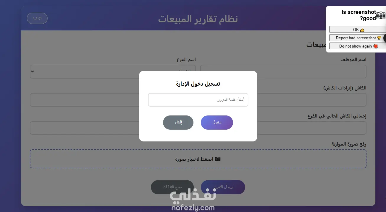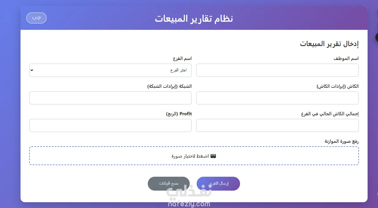 تطبيق ويب كامل وجاهز لإدارة تقارير مبيعات الفروع، يتيح لموظفيك إرسال تقاريرهم اليومية بسهولة وللإدارة مراجعة جميع البيانات وتصديرها إلى Excel في ثوانٍ.