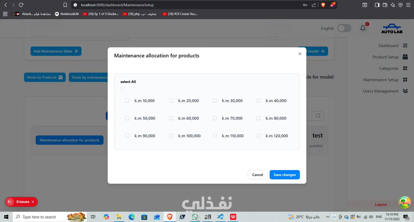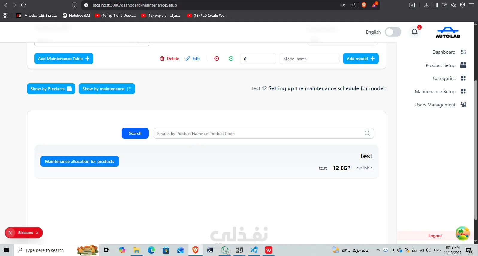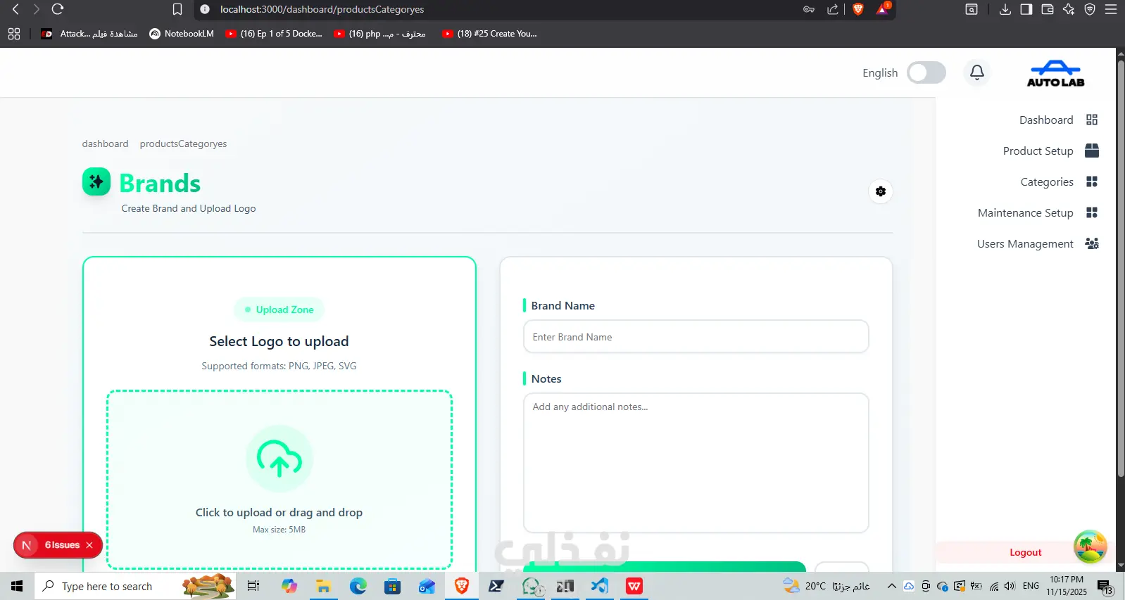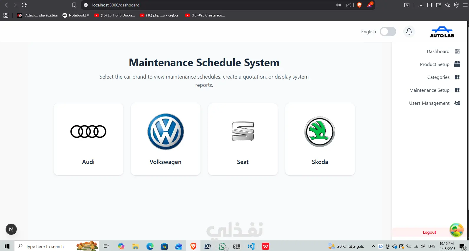 وصف مشروع نظام إدارة شركة سكودا للسيارات قمت بتطوير نظام إدارة متكامل لشركة سكودا للسيارات باستخدام Node.js، Next.js، Prisma، PostgreSQL، مع دعم لغتين: العربية والإنجليزية، وتصميم واجهة سهلة وسريعة للمستخدمين. يهدف النظام إلى تسهيل إدارة عمليات الشركة اليومية، ويتكون من مجموعة وحدات مترابطة تشمل: إدارة المنتجات إضافة وتعديل وحذف منتجات الشركة. ربط كل منتج بالتصنيفات، الأسعار، والمخزون. عرض المنتجات بشكل منظم مع إمكانية البحث والفلاتر. إدارة السيارات والموديلات تسجيل جميع موديلات السيارات المتاحة داخل الشركة. إضافة المواصفات الفنية مثل الموتور، الفتيس، الفئات، والألوان. إدارة أسعار السيارات وتحديثها بسهولة. إدارة الصيانات إضافة أنواع الصيانات وجدولتها. تسجيل تكلفة الصيانة وقطع الغيار. متابعة سجل الصيانة لكل سيارة داخل النظام. إدارة المستخدمين والصلاحيات إنشاء مستخدمين بعدة أدوار (مدير، موظف، مسؤول فرع). نظام صلاحيات متقدم للتحكم في عرض وتحرير البيانات. تسجيل جميع العمليات التي تتم داخل النظام (Activity Log). إدارة فرعين للشركة النظام يدير فرعين مختلفين بشكل كامل. إمكانية تشغيل الموظفين على فرع واحد أو أكثر حسب الصلاحيات. فصل البيانات الخاصة بكل فرع مع إمكانية دمج التقارير عند الحاجة. النظام ثنائي اللغة (عربي / إنجليزي) واجهة استخدام كاملة باللغتين. إمكانية حفظ اللغة المفضلة لكل مستخدم. التقنيات المستخدمة Back-End: Node.js + Express Front-End: Next.js + TypeScript Database ORM: Prisma Database: PostgreSQL Authentication: JWT أو Sessions رابط المشروع https://auto-lap.online/l...