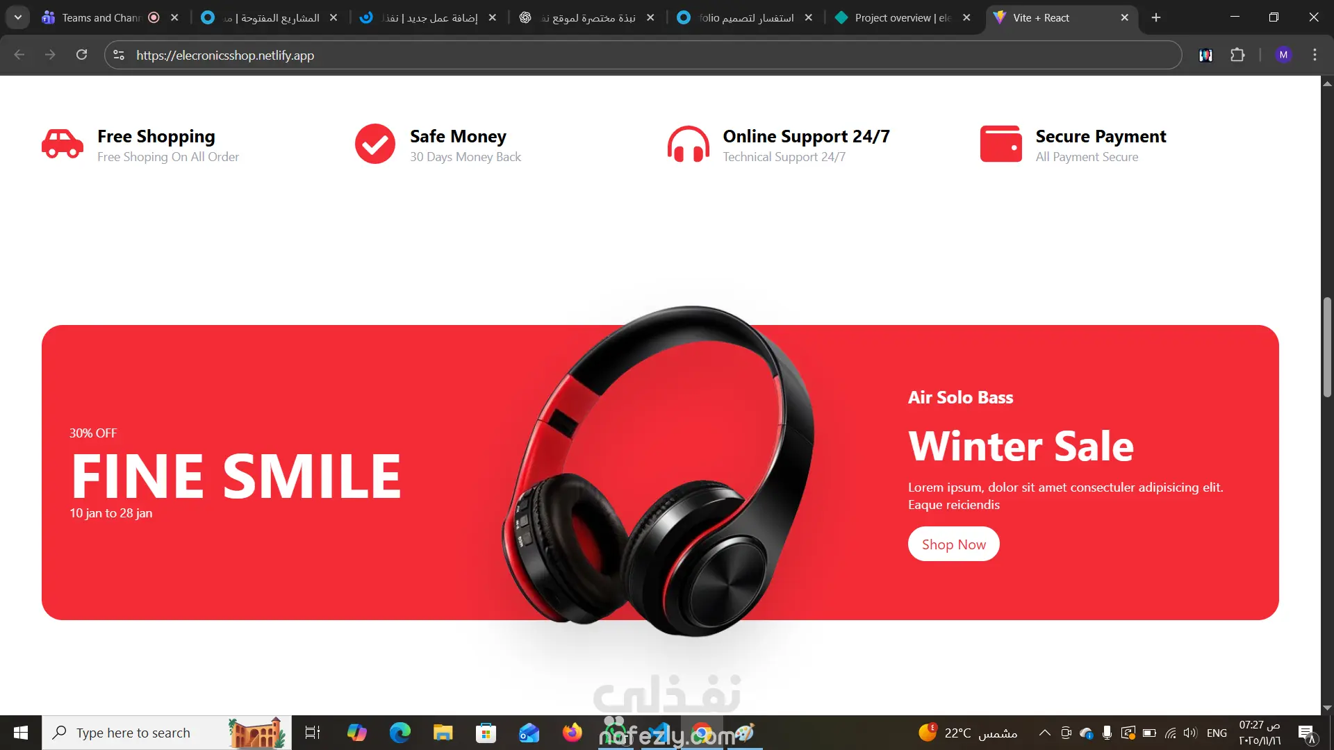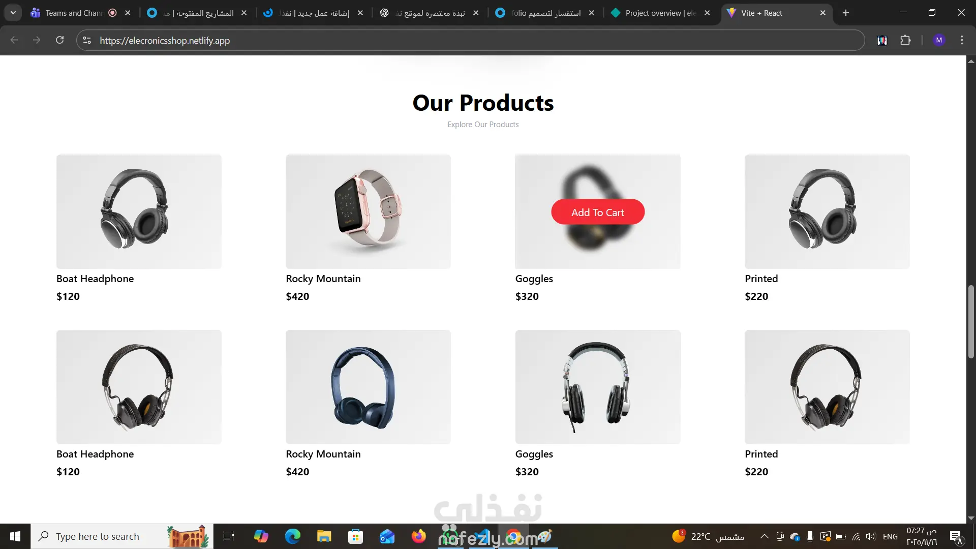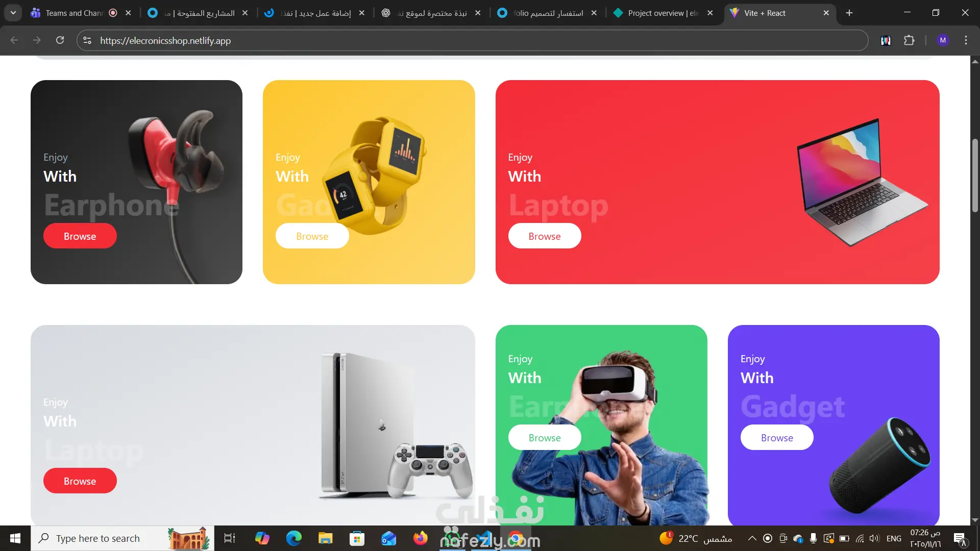 متجر الكتروني لعرض المنتجات الالكترونية تم استخدام الكثير من ال technologies زي React, Tailwindcss وغيرها تم مراعاة ال animations وكمان الموقع متناسب مع كل الشاشات سايبلك لينك الموقع عشان تشوف بنفسك