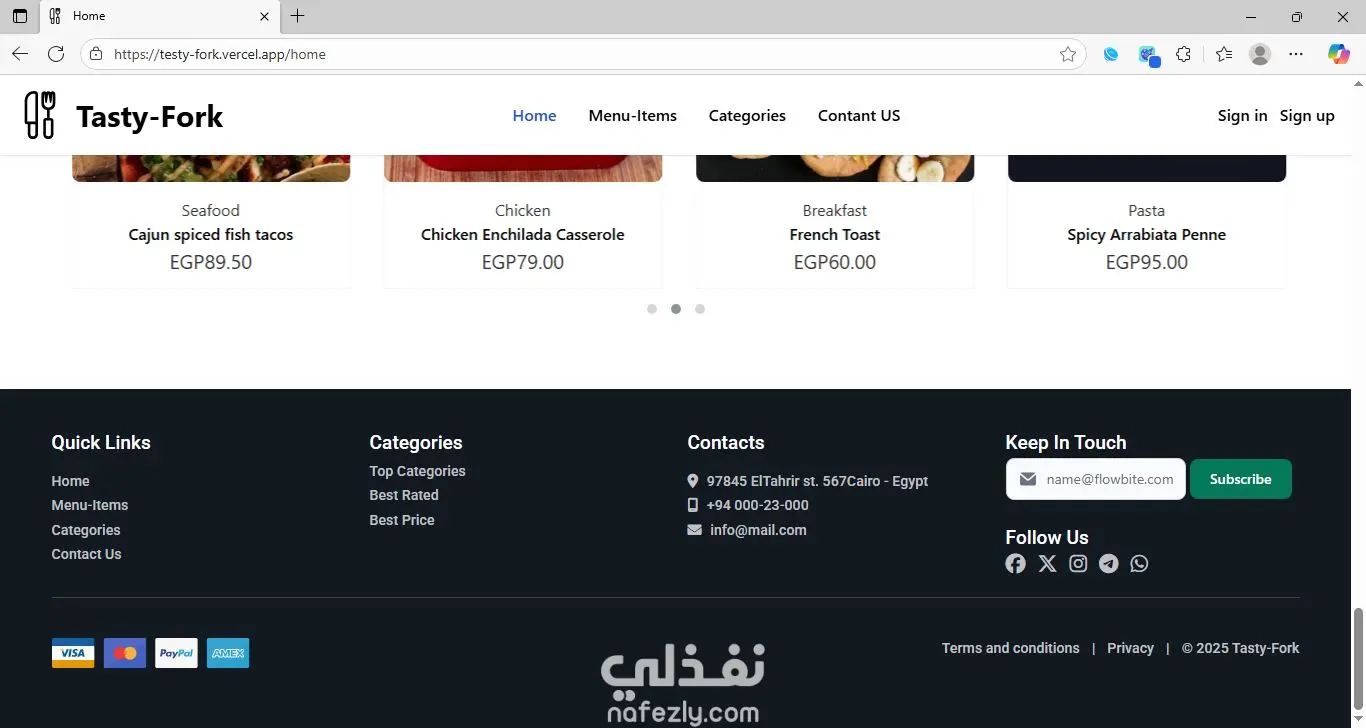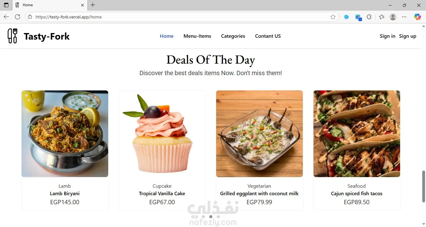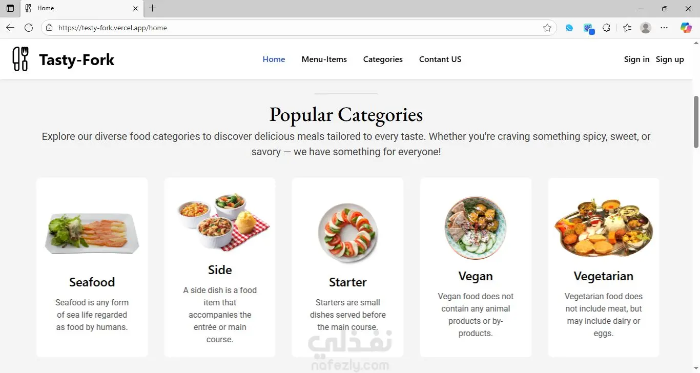 Tasty-Fork Tasty-Fork هو تطبيق E-commerce لطلب الوجبات عبر الويب، صممته ليقدّم تجربة سلسة وسريعة للمستخدم. يعرض التطبيق الوجبات، الأقسام، العروض اليومية، والمنتجات الأكثر مبيعاً بشكل جذاب ومنظّم، مما يجعل عملية التصفح والاختيار بسيطة ومريحة. ️ التقنية المستخدمة — Angular اعتمدت في تطوير Tasty-Fork على إطار Angular لأنه يوفر: سرعة عالية في الأداء تنقّل سريع داخل الصفحات بدون إعادة تحميل (Single Page Application) هيكلية منظمة تعتمد على المكوّنات قابلية كبيرة للتطوير وإضافة مزايا جديدة بسهولة هذا يجعل التطبيق يعمل بسلاسة ويُقدّم تجربة استخدام احترافية تشبه التطبيقات الكبيرة. حالة المشروع المشروع لا يزال قيد التطوير، وأعمل حالياً على إضافة مزايا جديدة وتحسين الواجهة والسرعة وتجربة المستخدم، إلى جانب تطوير خصائص الـ E-commerce الأساسية ليكون جاهزاً للإطلاق الكامل.