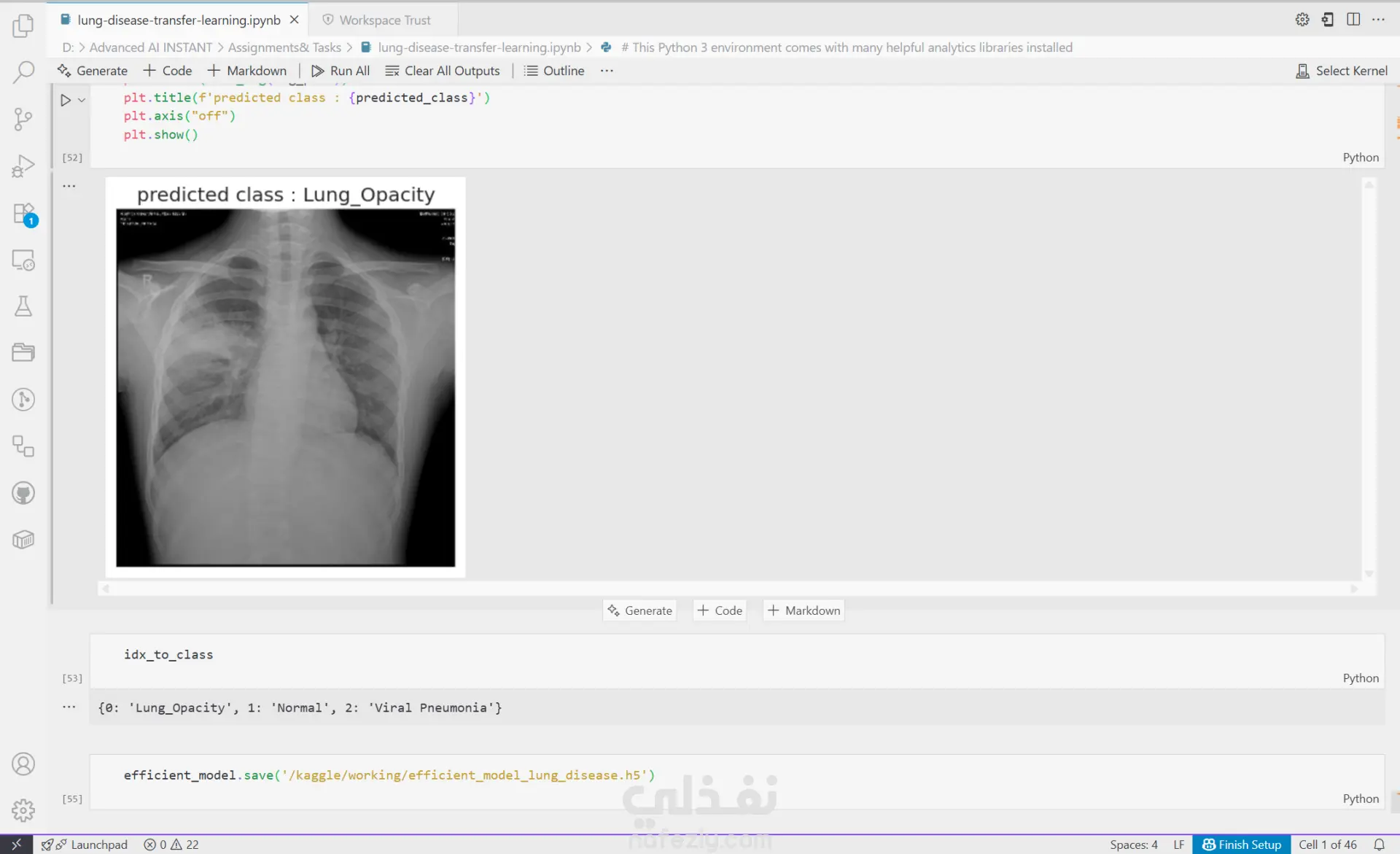 تطوير نماذج ذكاء اصطناعي (Deep Learning) لتصنيف صور الأشعة السينية للرئتين
