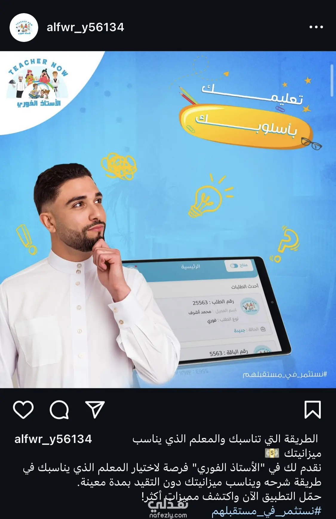تطبيق “الأستاذ الفوري” هو منصة تعليمية سعودية تهدف إلى تسهيل وصول الطلاب والمعلمين إلى بعضهم البعض، عبر خدمات تعليمية وتدريبية تُقدّم حضوريًا أو عن بُعد. عملتُ على إعداد خطة محتوى شهرية كاملة للمنصات الاجتماعية للتطبيق، مع صياغة محتوى يعرّف بالخدمات، ويعزز ثقة المستخدمين، ويرفع الوعي بقيمة التطبيق للطلاب والمعلمين وأولياء الأمور. خطوات العمل التي قمتُ بها:- 1) دراسة التطبيق وتحليل جمهوره تحليل طبيعة التطبيق وخصائصه الرئيسية. تحديد الفئات الثلاث المستهدفة بدقة: ( أولياء الأمور - الطلاب - المعلمين والمدربين ) ثم فهم احتياجات كل فئة وتقديم محتوى يخاطبهم بلغتهم وأولوياتهم. 2) إعداد خطة محتوى متكاملة وضعت خطة شهرية تعتمد على محاور رئيسية تشمل: - توعية الجمهور بخدمات التطبيق مثل اختيار المعلم عبر الخريطة، تقييم المعلّمين، والتواصل الفوري. - محتوى موجّه للمعلمين لعرض مزايا التسجيل وطرق زيادة الدخل والوصول للطلاب. - محتوى موجّه لأولياء الأمور حول تحسين مستوى الأبناء في المواد المختلفة. - محتوى تربوي ونصائح تعليمية. - محتوى ترويجي يبرز قيمة التطبيق وسهولة استخدامه. الخطة تضمنت أنواع محتوى متنوعة: - بوستات توعوية (Awareness) - بوستات حلول للمشاكل التعليمية - بوستات مزايا التطبيق - بوستات تفاعلية - بوستات موجهة للمعلمين - بوستات تستهدف الطلاب وأولياء الأمور 3) كتابة محتوى البوستات بالكامل: قمتُ بكتابة جميع النصوص التي تظهر في المنشورات، ومن ضمنها: - تعريف بخدمات التطبيق - مشاكل يواجهها أولياء الأمور - محتوى موجّه للمعلمين - محتوى تحفيزي وتعليمي 4) إنشاء رسائل واضحة لكل فئة. لأولياء الأمور: 1- كيف يحسّن التطبيق مستوى أبنائهم بسهولة. 2- اختيار المدرّس القريب منهم. 3- نصائح تعليمية. للمعلمين والمدرّبين: 1- رفع جودة خدماتهم. 2- الحصول على طلاب أكثر. 3- الوصول السريع عبر الخريطة. إبراز خبراتهم على المنصة. للطلاب: 1- تحفيزهم للتعلم بأسلوب يناسبهم. 2- اقتراح طرق تعليم ممتعة. 5) ضمان تنوع المحتوى وتناسقه مع الهوية البصرية 1- صياغة محتوى يتوافق مع الألوان التعليمية والخفيفة في الهوية البصرية. 2- استخدام لغة مباشرة، بسيطة، وواضحة. 3- التأكد من أن كل منشور يحمل رسالة واحدة قوية وسهلة الفهم. النتيجة: 1- جاهزية خطة محتوى كاملة لشهر كامل. 2- تنوّع في زوايا الطرح بين التعليم، الفائدة، التوعية، والترويج. 3- محتوى موجّه يناسب كل فئة من جمهور التطبيق. 4- تعزيز الوعي بقيمة التطبيق للمعلمين والطلاب وأولياء الأمور. 5- جذب المزيد من الاهتمام بالتطبيق عبر رسائل تسويقية واضحة وبسيطة. الخدمات المقدمة ضمن المشروع: 1- إعداد استراتيجية محتوى شهرية 2- صياغة خطوط المحتوى (Content Pillars) 3- كتابة جميع النصوص للبوستات 4- صياغة رسالة البراند ونبرة المحتوى 5- تخصيص الرسائل التسويقية لكل فئة 6- إعداد محتوى تعليمي وتوعوي 7- ضبط النصوص لتناسب الهوية السعودية 8- تجهيز خطة نشر يومية