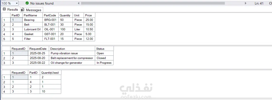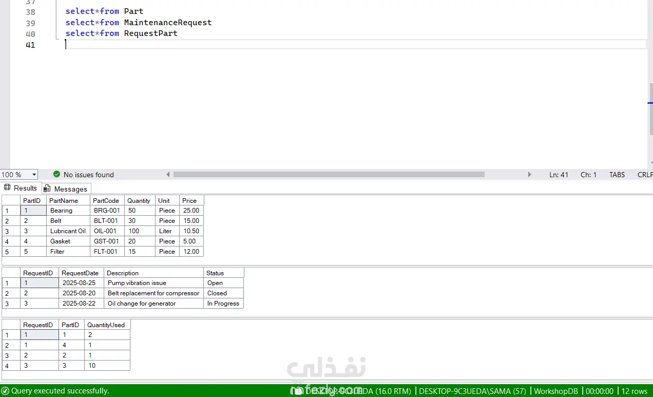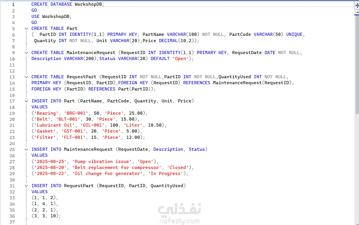 تصميم قاعدة بيانات لورشة وداشبورد