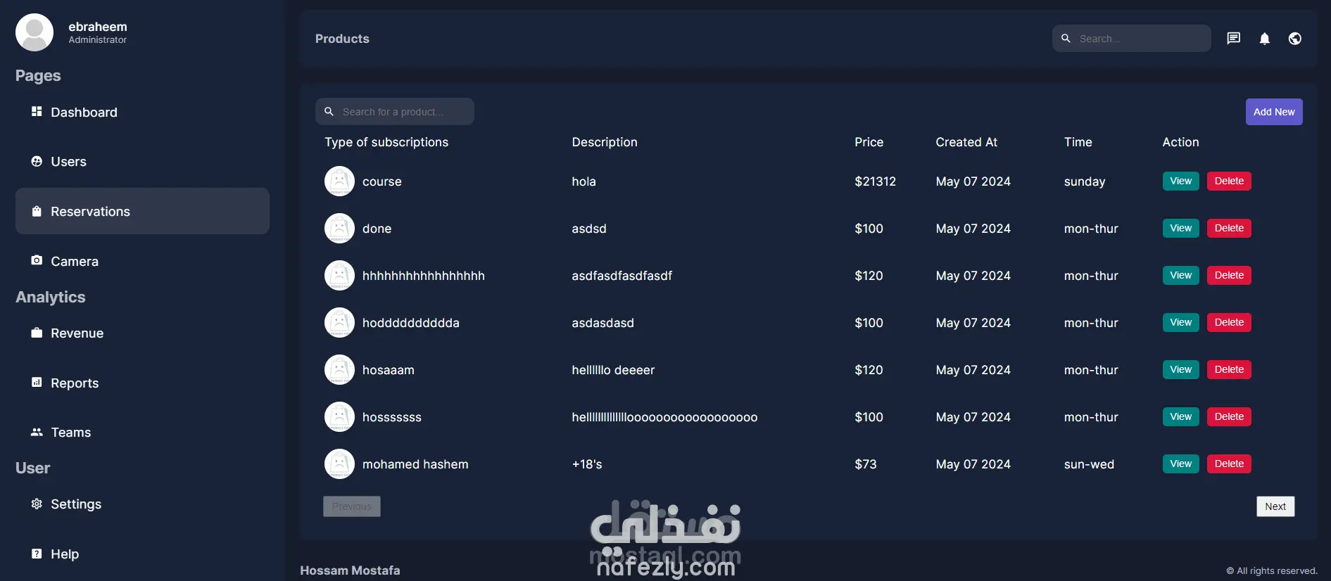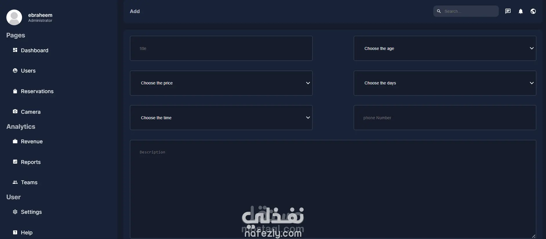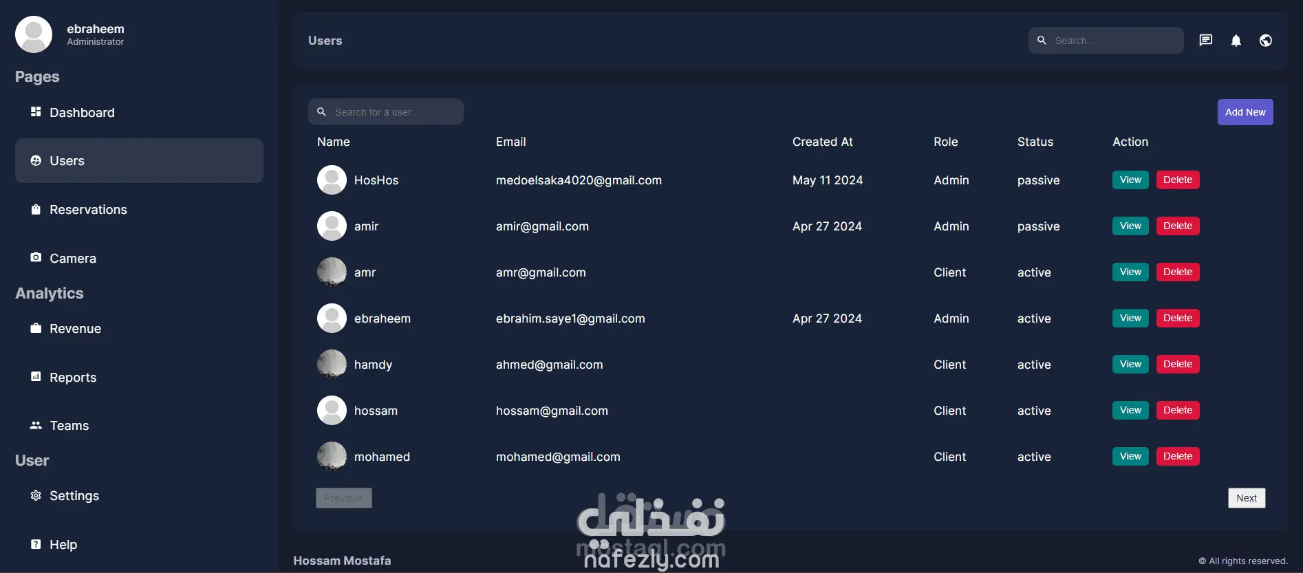 لوحة تحكم ذكية لمراقبة حمامات السباحة في الوقت الحقيقي باستخدام الذكاء الاصطناعي لاكتشاف حالات الغرق والسلوك غير الطبيعي. تم تطوير الواجهة باستخدام React.js وNext.js 14 مع تصميم احترافي يتيح عرض التنبيهات والبيانات بشكل ديناميكي وسهل القراءة. الميزات: دمج نماذج ذكاء اصطناعي لمعالجة الفيديوهات في الوقت الفعلي. واجهة تفاعلية ولوحات تحليل بصرية. نظام صلاحيات للمستخدمين (مدير – مشرف). استخدام MongoDB وMiddleware Authentication.