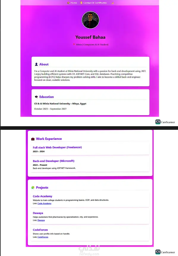 لو كنت تبحث عن عمل بروتفوليو احترافي انا طالب في كلية الحاسبات و عندي خبرة في مجال الفرونت اند