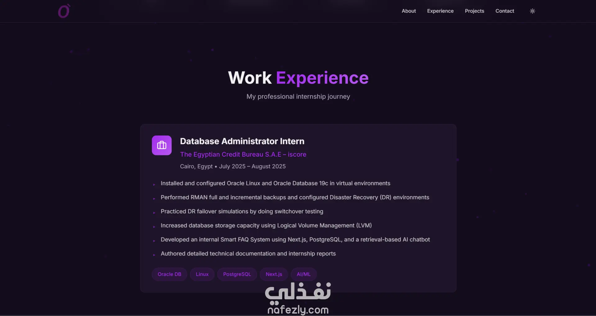 تطوير موقع بورتفوليو احترافي يعرض مهارات العميل، أعماله، خدماته، وسيرته الذاتية بشكل جذاب ومتجاوب، مع تصميم حديث وسهل الاستخدام يدعم مختلف الأجهزة.