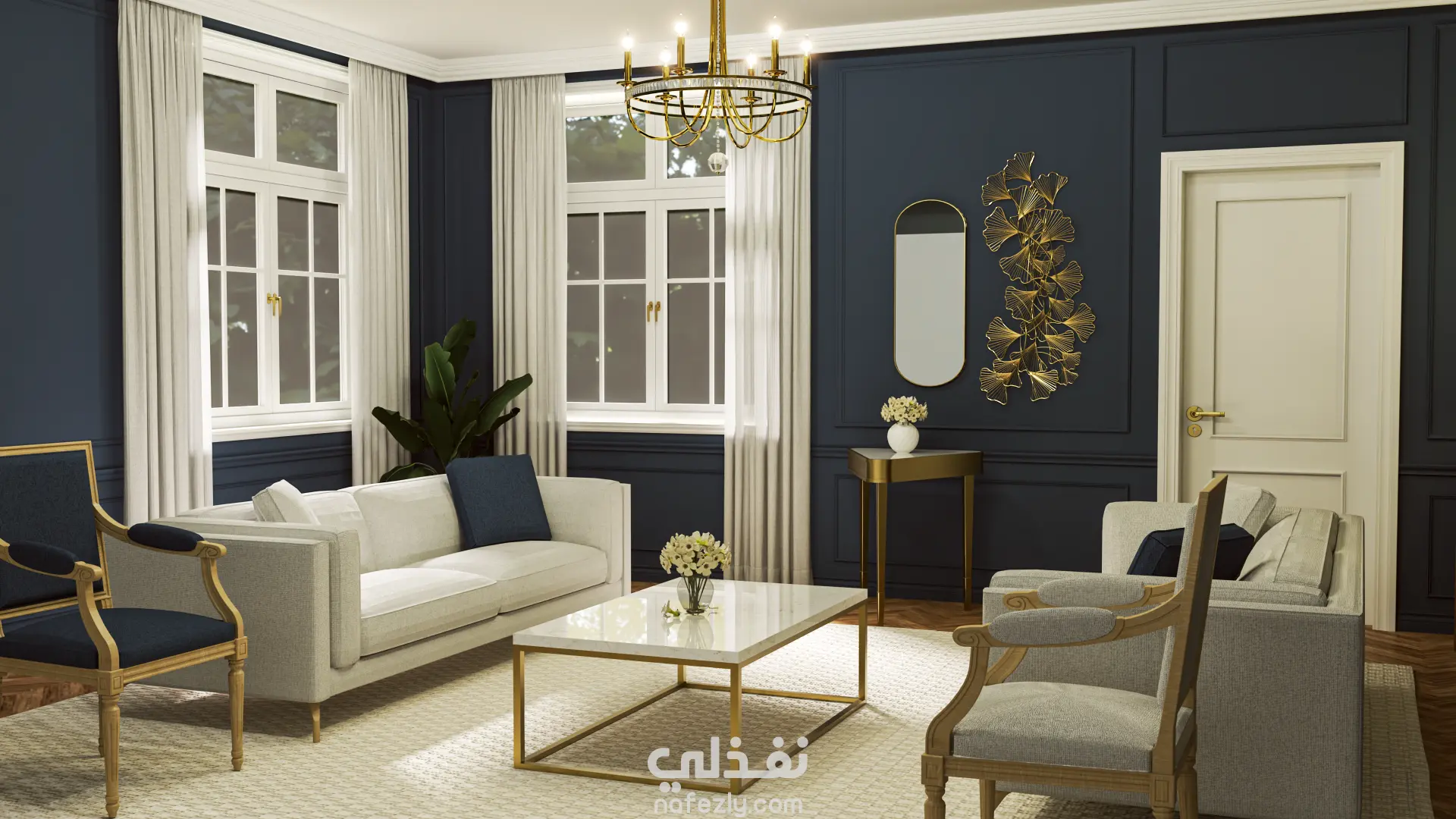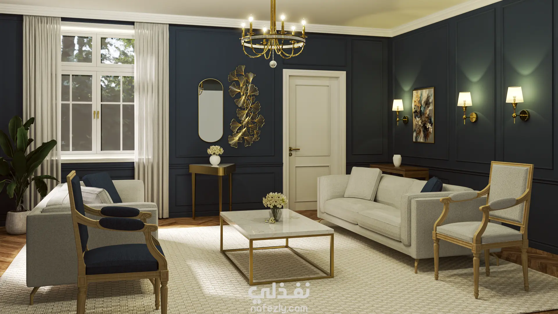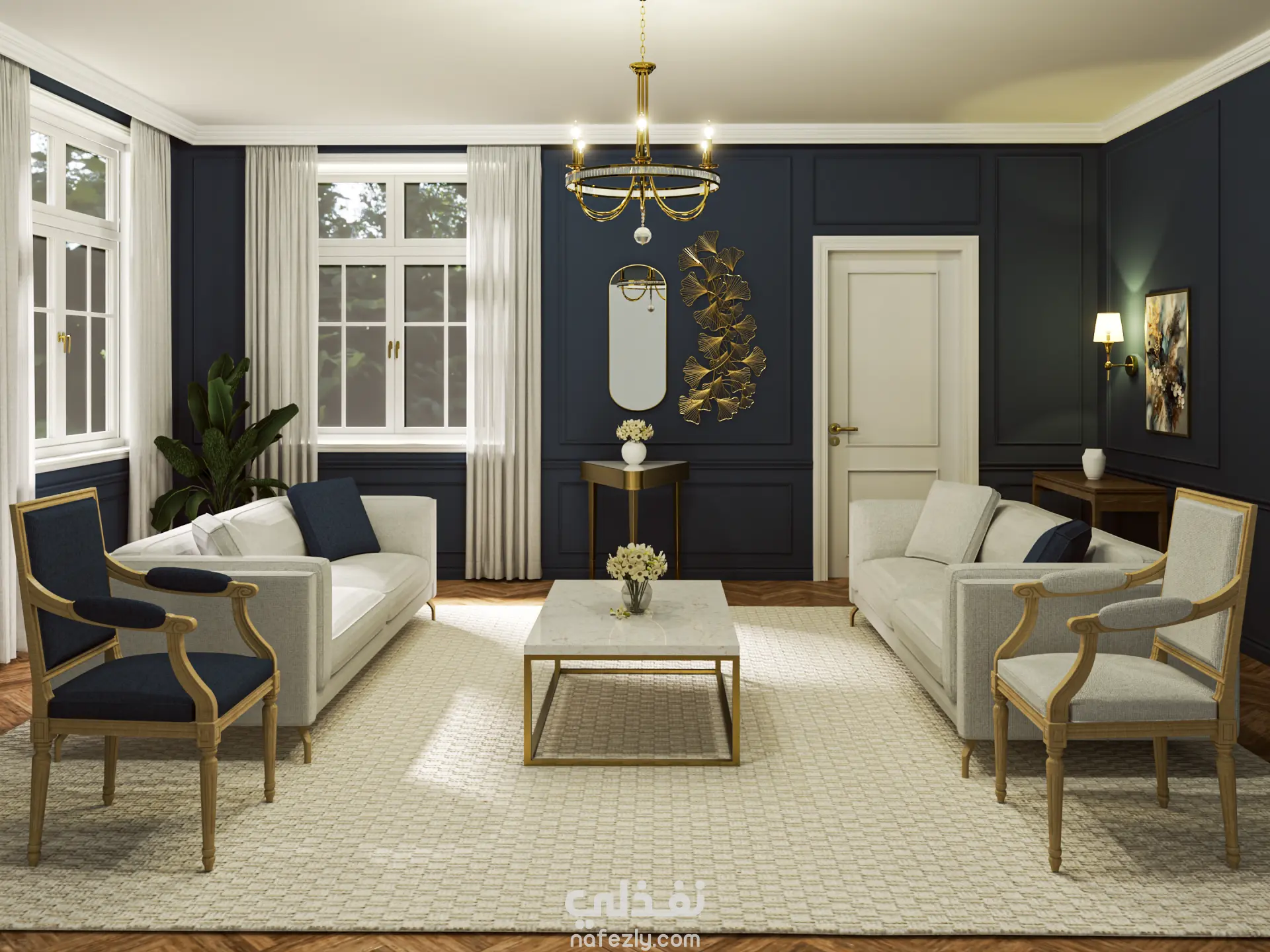 غرفة معيشة كلاسيكية | SketchUp + V-Ray