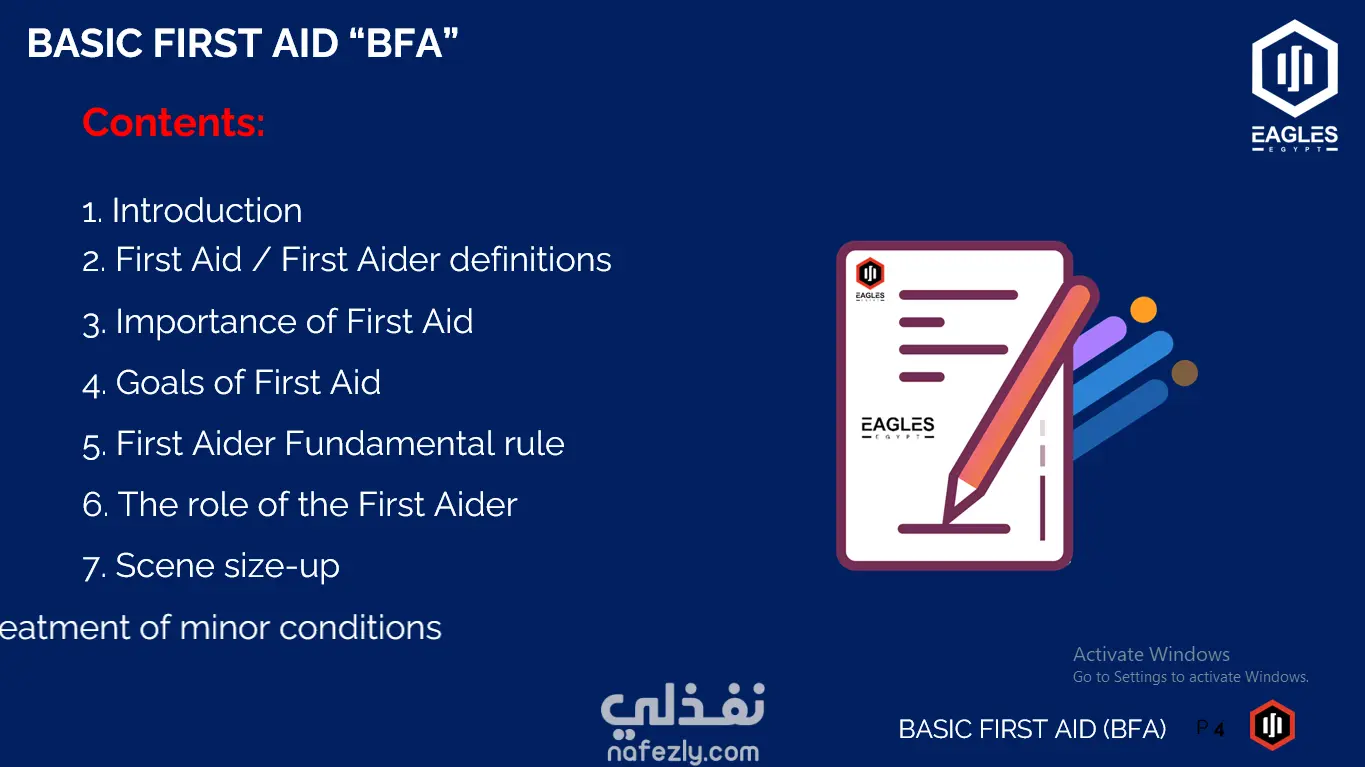 وصف المشروع: حقيبة تدريبية – الإسعافات الأولية (Eagles Egypt) قمت بتصميم حقيبة تدريبية متكاملة باللغة الإنجليزية حول الإسعافات الأولية لصالح Eagles Egypt، بهدف تعزيز مهارات المشاركين في التعامل مع حالات الطوارئ بطريقة آمنة وفعّالة. محتوى الحقيبة التدريبية: دليل مدرب شامل: يوضح أهداف التدريب، خطة الجلسات، طرق التنفيذ، والمدة الزمنية لكل نشاط. دليل متدرب: منسّق وسهل القراءة مع شروحات مبسطة للمفاهيم الأساسية. محتوى تدريبي مكتوب بأسلوب واضح وبسيط يغطي أهم مفاهيم الإسعافات الأولية. أنشطة وتمارين عملية لتعزيز الفهم والتطبيق الفوري للمهارات. اختبارات قبل/بعد التدريب لقياس مدى اكتساب المهارات. عرض تقديمي PowerPoint جذاب ومتناسق مع محتوى الحقيبة. مراجعة لغوية كاملة وتنظيم المحتوى بشكل احترافي. نتائج المشروع: تعزيز قدرة المشاركين على التعامل مع حالات الطوارئ بكفاءة وثقة. توفير حقيبة جاهزة للاستخدام والتدريب داخل المؤسسة أو للبرامج التفاعلية. تقديم محتوى شامل وسهل التطبيق لكل المستويات. لماذا هذا المشروع مميز: تصميم شامل يجمع بين الجانب النظري والتطبيقي. مراعاة الأسلوب التعليمي المبسط والمنظم لتسهيل التعلم. محتوى متوافق مع أفضل الممارسات في التدريب على الإسعافات الأولية.
