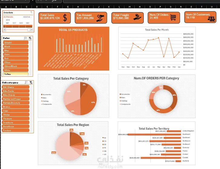 تحليل بيانات لي محل في اكسيسوارات و دراجات نارية طلعنا مجموع المبيعات و الضرائب ب استخدام اكسيل