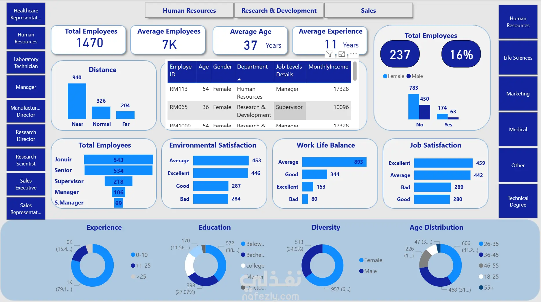 This project is an HR Analytics Dashboard developed in Power BI to visualize and analyze key HR metrics such as employee performance, attrition, demographics, and satisfaction levels.