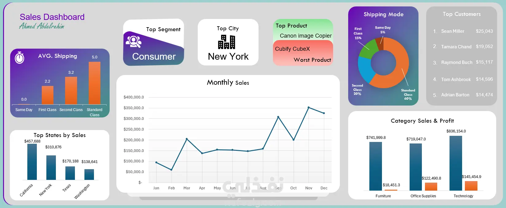 قمتُ بتحليل بيانات المبيعات في Excel لتحديد الاتجاهات واستخلاص الرؤى، كما أنشأتُ لوحة تحكم تفاعلية لعرض المؤشرات الرئيسية، مما يساعد على تحسين عملية اتخاذ القرار ومتابعة الأداء بكفاءة.