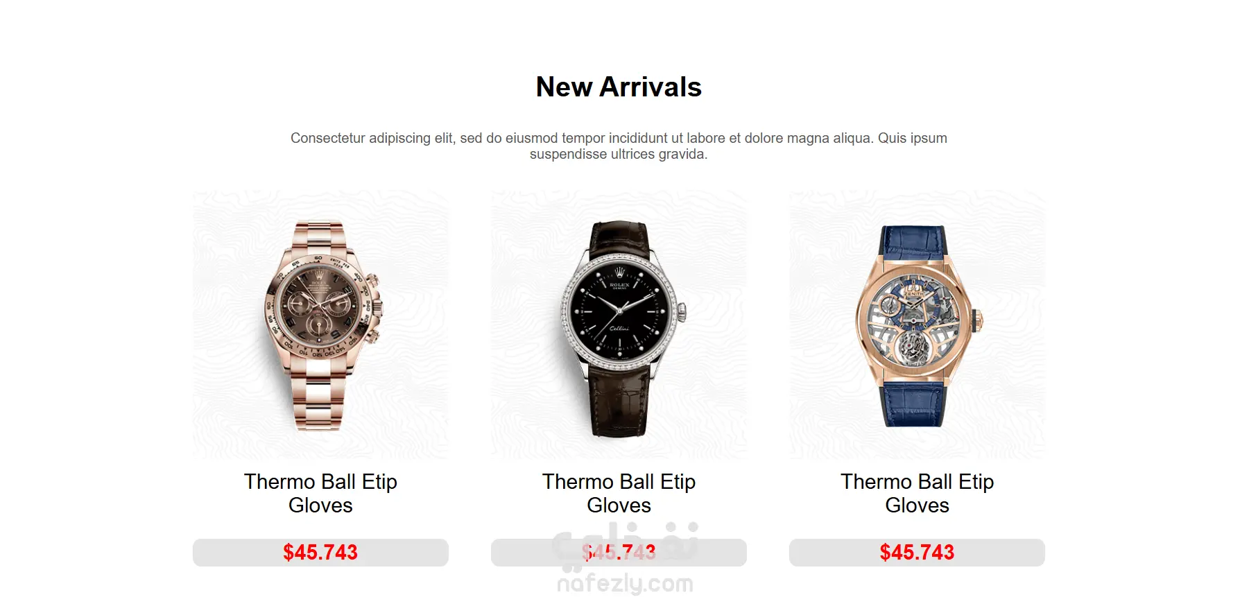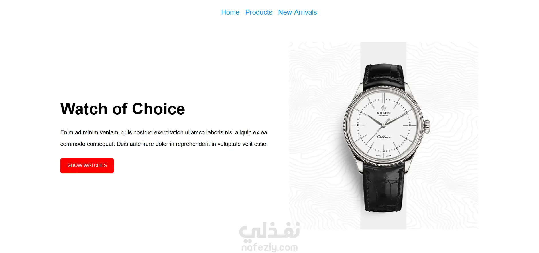 Landing Page بسيطة تم تطويرها بـ HTML وCSS لعرض مجموعة من الساعات بطريقة أنيقة وجذابة. المحتوى والمميزات: - قسم رئيسي (Hero) بصور جذابة - عرض واضح للساعات مع صور عالية الجودة - تصميم متناسق باستخدام Flexbox وGrid - صفحة متجاوبة تعمل على جميع الأجهزة - هيدر وفوتر بسيط لتنظيم الصفحة التقنيات: - HTML5 - CSS3 - Responsive Design
