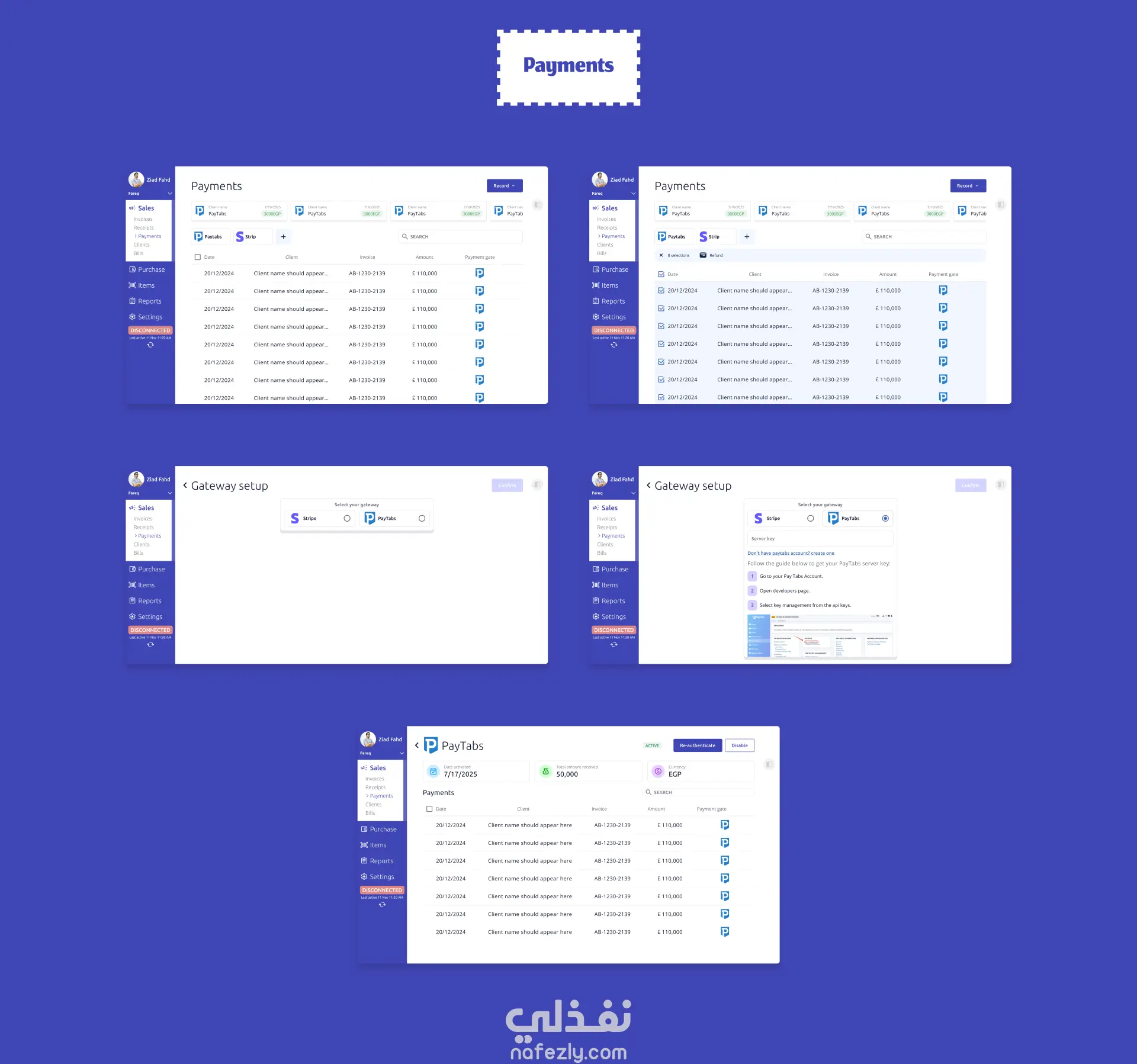 فواتيرك هو موقع أو منصة متكاملة تقوم ب أدارة الفواتير والأيصالات لأصحاب العمل من أعمال حرة للشركات بمختلف أحجامها بل أضافة للمحاسبين كما أن المستخدم يمكنه من خلال المنصة أن يرسل فواتير بشكل أوتوماتيكى فى موعد يقوم بتحديده و يمكنه أدارة عملاءه المتاحين فى الوقت الحالى بكل سهوله من داخل المنصة, المنصة تقدم كذلك التقارير التى يحتاجها المستخدمين بمختلف أنواعها لضمان نجاح عملهم وأستمراره وتطوره بل شكل المطلوب وكذلك أدارة وأضافة المنتجات المراد بيعها وتتبع مبيعتها من خلال صفحة المنتجات أو ال Items العناصر ويمكن تتبع وأدارة المدفوعات بسهوله من داخل المنصة و أضافة وسيلة دفع من الوسائل المتاحة وكذلك انشاء فواتير متوافقه مع قواعد مصلحة الضرايب المصرية يمكنك مشاهدة دراسة الحاله بل تفصيل من خلال رابط المعاينه لمعرض أعمالى ومع العلم أن هذا المشروع قمت به لعميل بل فعل ولكن قمت بتغيير الأسم بسبب أتفاقية عدم الأفصاح