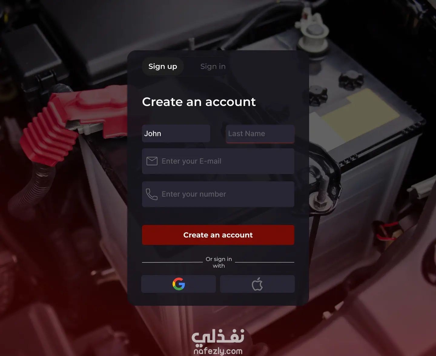 sign up page