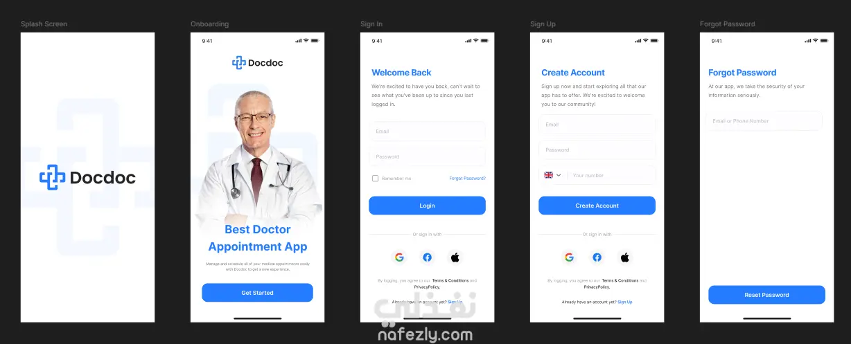 تطبيق حجز مواعيد مُصمَّم بأسلوب عصري وسلس لتوفير تجربة مستخدم مريحة وسريعة. يتيح للمستخدمين استعراض قائمة بمقدّمي الخدمات (مثل الأطباء أو المختصين)، اختيار وقت مناسب من التقويم، وتأكيد الحجز بضغطة زر. أهم المزايا في التصميم: واجهات بسيطة ونظيفة تسهل عملية التنقل بين الشاشات. تصميم متجاوب ومنظم يعزز وضوح المعلومات (مثل الأوقات، الخدمات، تأكيد الحجز). تدفق UX واضح من التسجيل / الدخول إلى اختيار الخدمة ثم الميعاد والتأكيد. العناصر البصرية (ألوان، أيقونات، طباعة) تم اختيارها بعناية لتجعل تجربة المستخدم مريحة وموثوقة. إمكانية إشعارات للحجز والتذكير، مما يساعد المستخدمين على إدارة مواعيدهم بسهولة. إسهاماتي في المشروع: تصميم كامل للشاشات (واجهة المستخدم) باستخدام Figma. استخدام نماذج أولية (prototype) لإظهار التفاعل بين المستخدم والتطبيق. تحسين تدفق المستخدم (User Flow) ليكون الحجز سريع وسلس. الحرص على قابلية التوسع في التصميم ليتمكن المطور من تحويله إلى تطبيق حقيقي بسهولة.