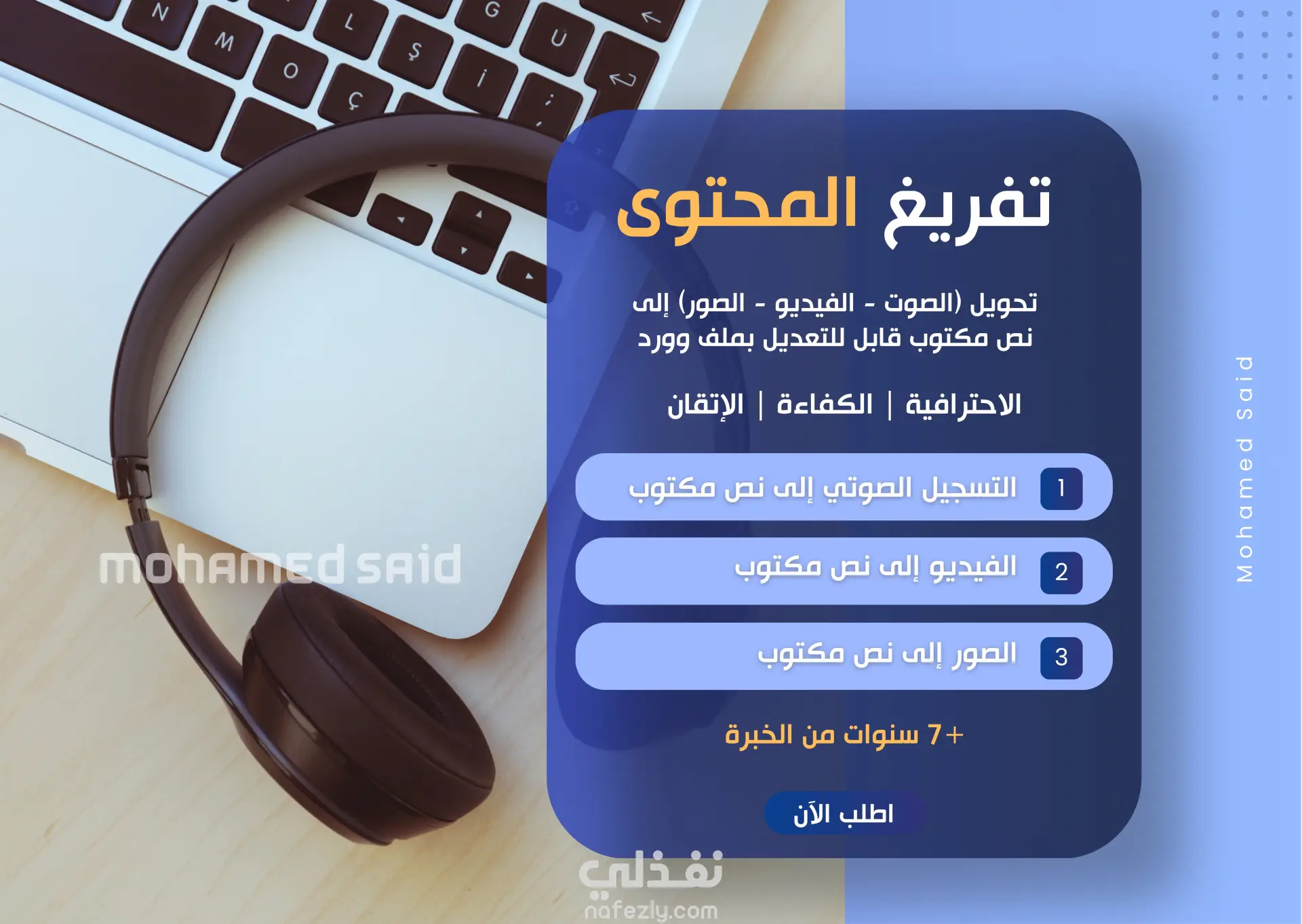 نوفر ونقدم لك خدمة تفريغ المحتوى باحترافية عالية