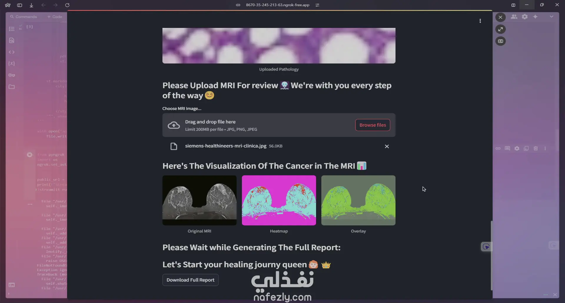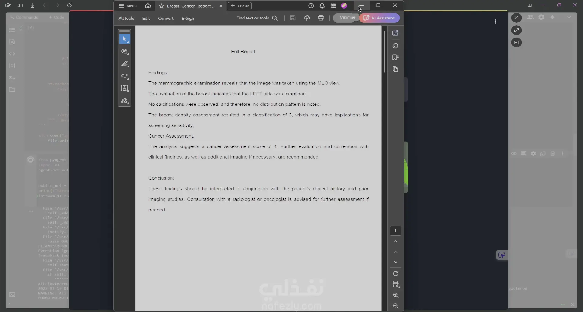 هذا المشروع يهدف إلى بناء نظام ذكي متكامل يعتمد على التعلم العميق (Deep Learning) لتطوير عملية تشخيص سرطان الثدي، والذي يعد أحد أكثر أنواع السرطان فتكاً بالنساء عالمياً. يتجاوز النظام الطرق التقليدية التي تعاني من بطء ووقت طويل وتعتمد على الفحص اليدوي. المنهجية والتقنيات الأساسية يعتمد المشروع على دمج منهجيتين رئيسيتين: 1- التعلم العميق وتحليل الصور: تم استخدام الشبكات العصبية التلافيفية (CNNs) ، مع نماذج متقدمة مثل DenseNet201 ، لتحليل الصور الطبية. 2- التصوير متعدد الوسائط (Multimodal Imaging): يتم تدريب النماذج على مجموعتين من البيانات لزيادة دقة التشخيص: صور الماموغرام (CBIS-DDSM): لتحليل الكتل والتكلسات والتشخيص الأولي. صور الأنسجة المرضية (Histopathology Images): لتصنيف الخلايا على المستوى المجهري. نماذج العمل الرئيسية (الـ Models) تم تصميم ثلاثة نماذج متخصصة باستخدام TensorFlow/Keras لتعمل في مسار متدرج: 1- التصنيف الثنائي (Benign vs. Malignant): لتحديد ما إذا كانت الآفة حميدة أو خبيثة كخطوة تشخيص أولية. 2- التصنيف متعدد الملصقات (Multi-Label Classification): يوفر تشخيصًا تفصيليًا للحالات الخبيثة، متنبئًا بزاوية التصوير، ونوع التكلس، وكثافة الثدي. 3- نموذج علم الأمراض (Pathology Classification): لتصنيف رقع الأنسجة المجهرية إلى حميدة أو خبيثة. الأدوات والتحديات الأدوات: استخدم المشروع لغة Python مع مكتبات Pandas, NumPy لتحليل البيانات، و Streamlit لواجهة الويب التفاعلية، وتم التدريب على منصة Google Colab.