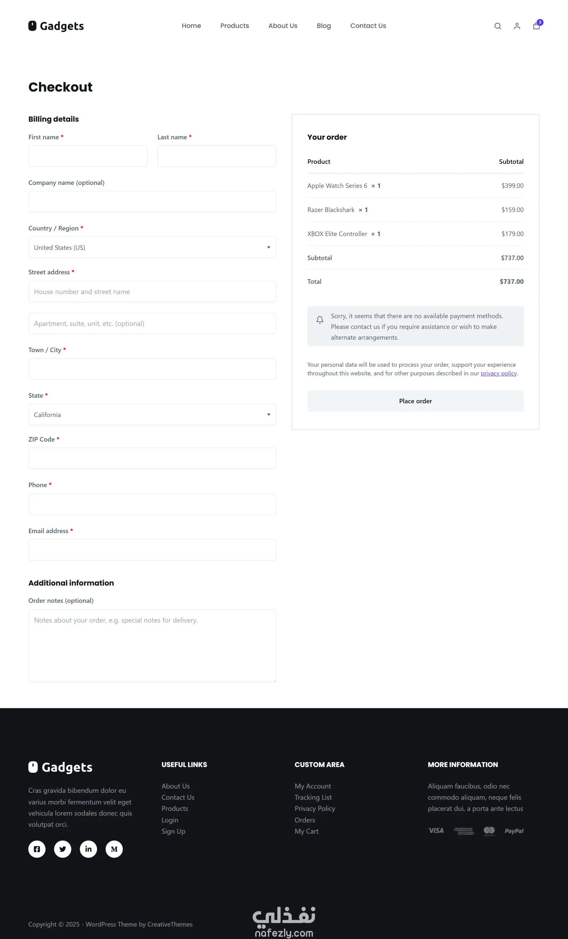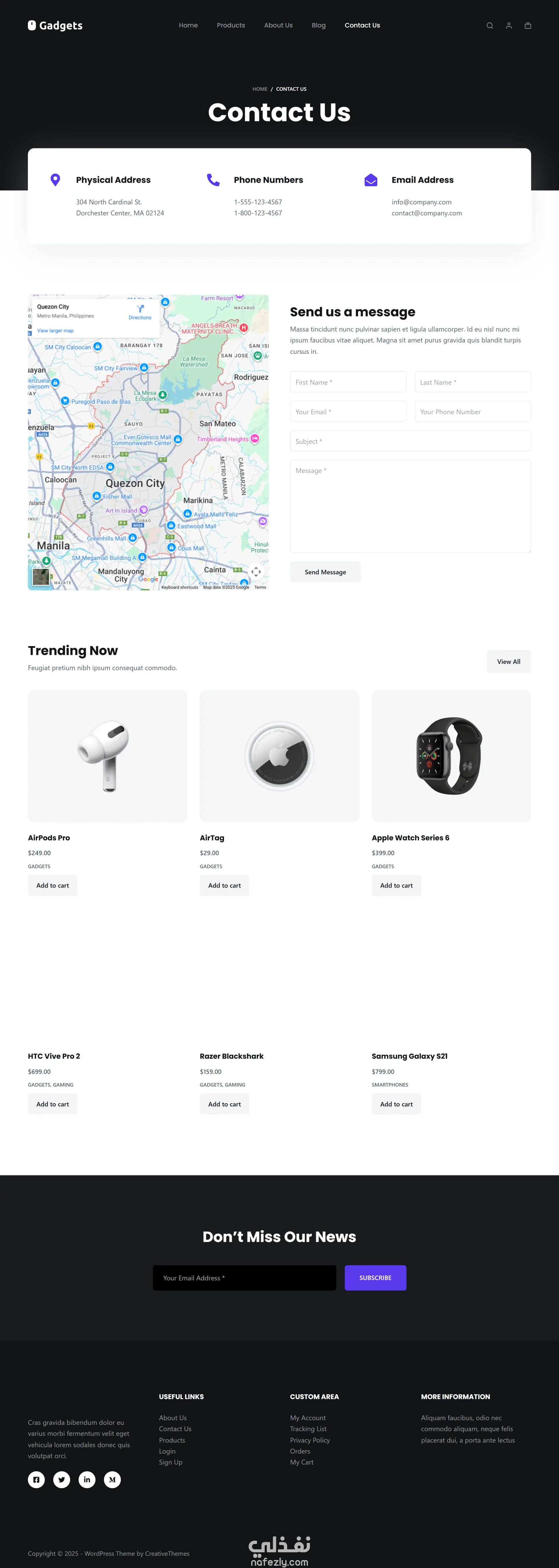 تم تنفيذ مشروع Gadgets Store وهو متجر إلكتروني عصري تم بناؤه باستخدام WordPress + WooCommerce لبيع الأجهزة الإلكترونية والملحقات التقنية.
