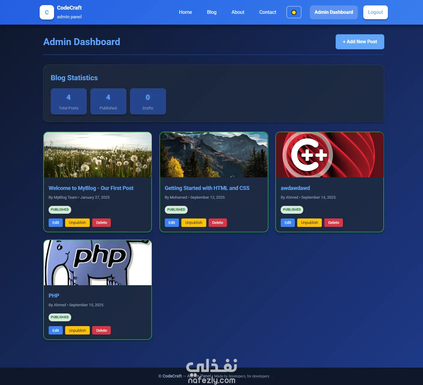 - تحرير أو حذف المقالات بسهولة من خلال لوحة تحكم واضحة ومنظمة.