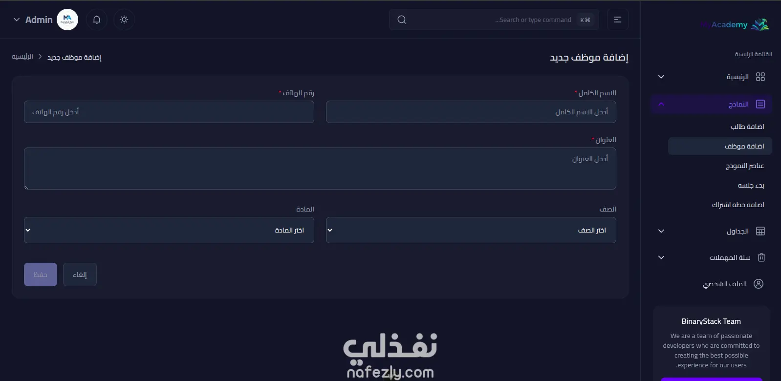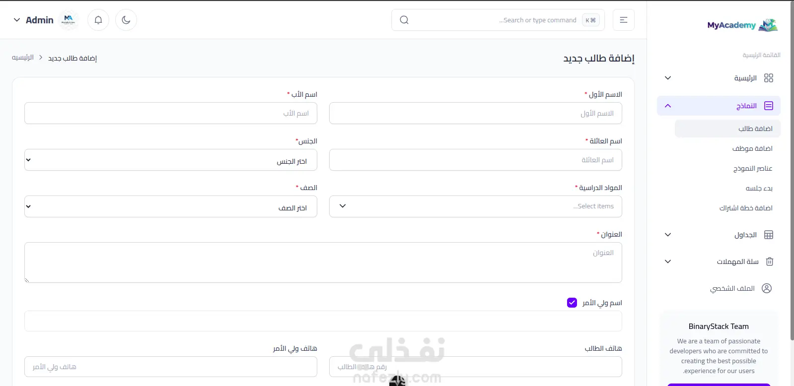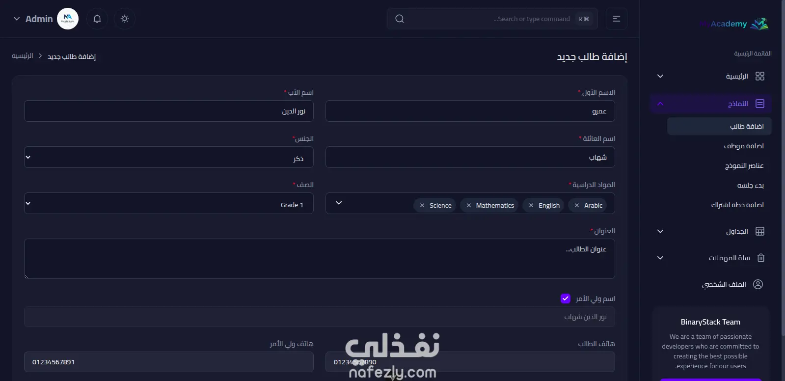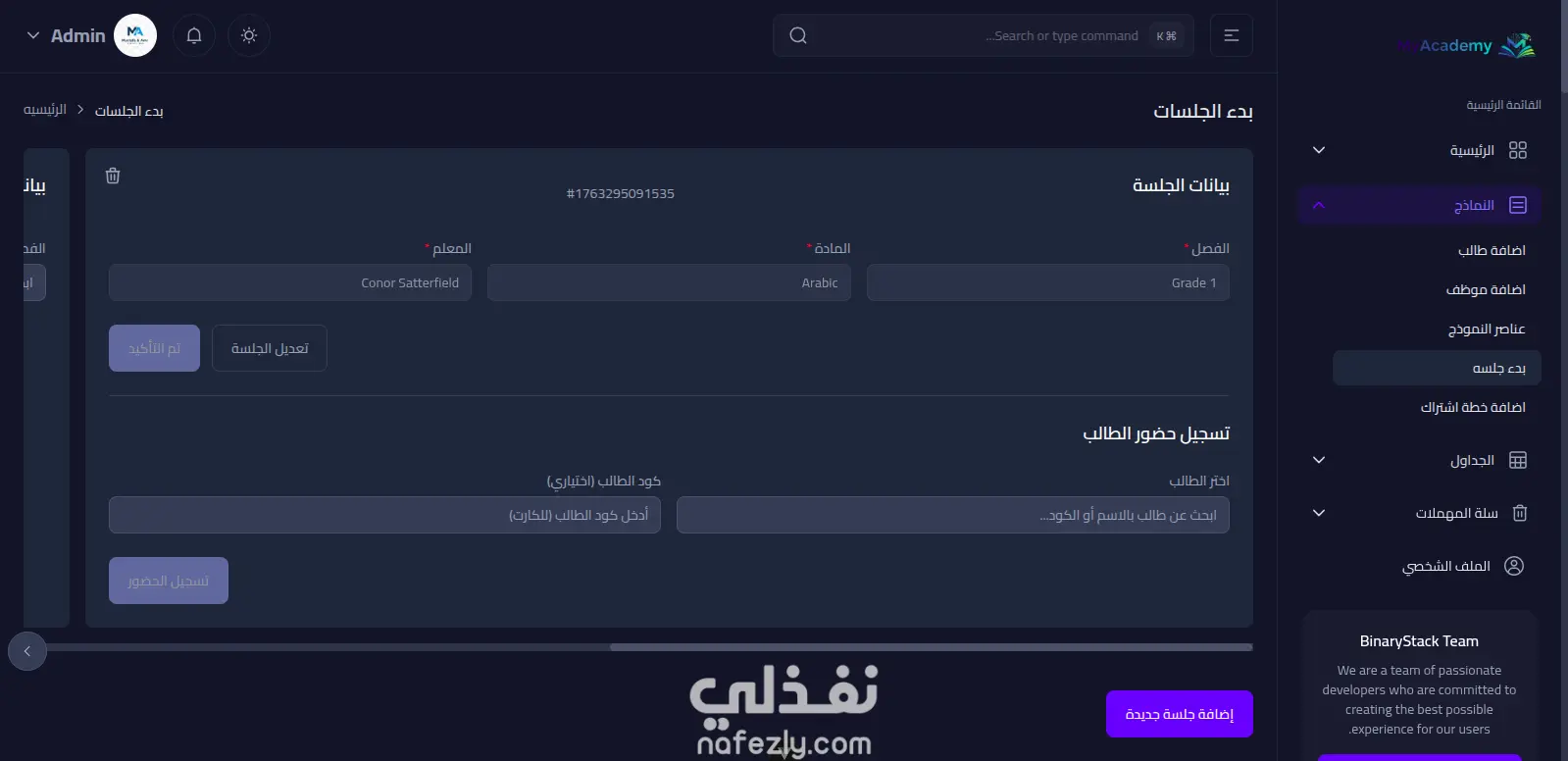 مشروع حر لى سيستم ادارة السناتر التعليميه ومراكز التدريس, المشروع فيه ميزة ارسال التنبيهات اولياء الامور عن طريق تليجرام لإخطارهم بحضور وانصراف ابنائهم من الحصص او الدورات