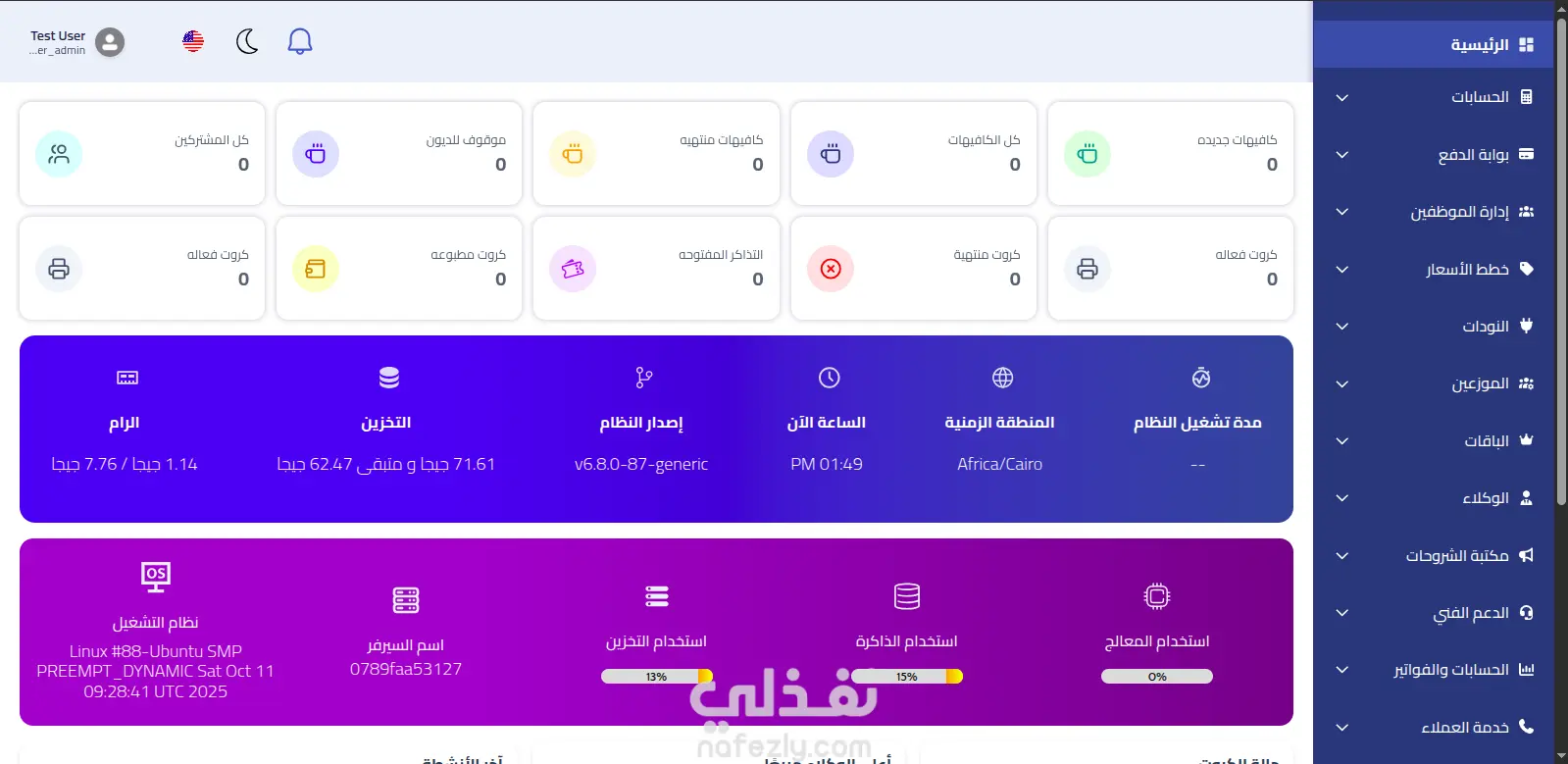 سيستم لادارة شبكات الكافيهات مزود بخدمة ارسال رسائل بريديه للعملاء لتأكيد OTP, و CRUD APP كامل لاضافة وتعديل وحذف واسترجاع الموظفين و الباقات و الموزعين, الخ... - فيه مود فاتح وغامق وخدمات اخرى كثيره كما موضح بالصور وتم رفع السيستم على استضافة VPS كلاً من الباك اند + الفرونت اند