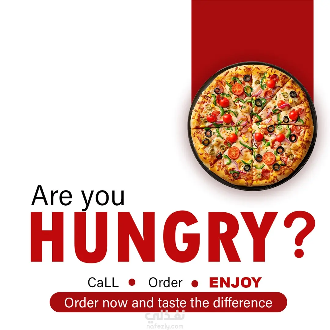 تصميم إعلان بصري احترافي وجذاب لبيتزا "طعم الربيع"، يهدف إلى الترويج للمنتج عبر منصات التواصل الاجتماعي.