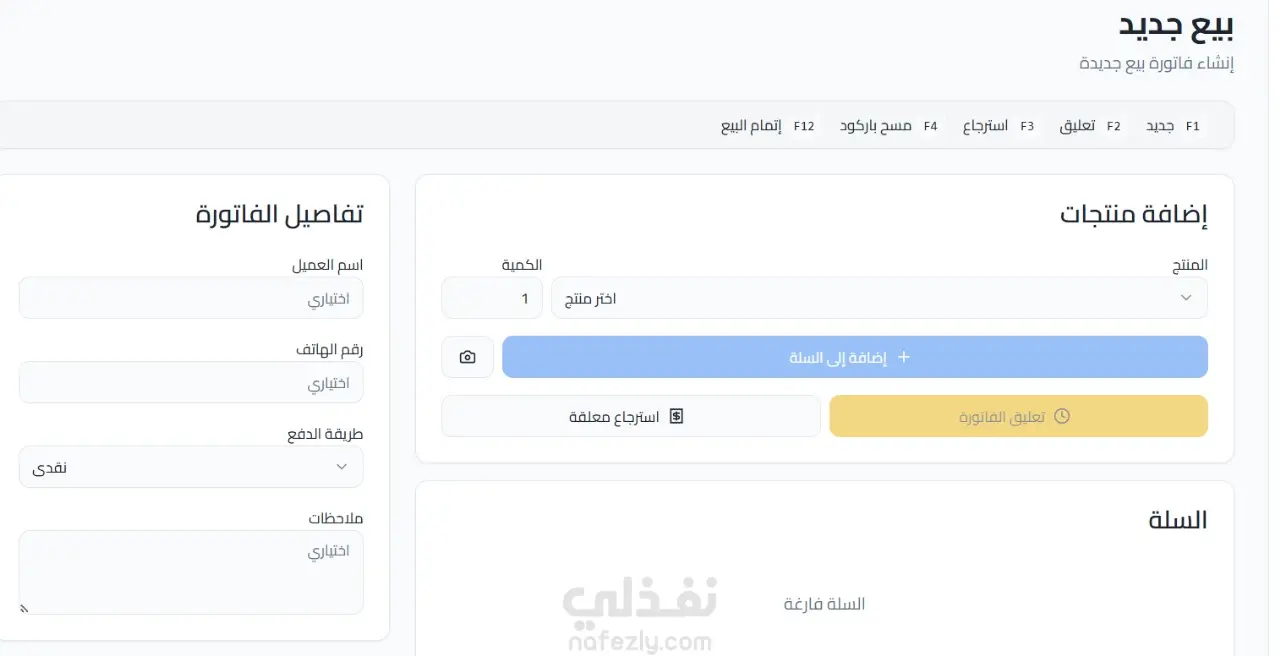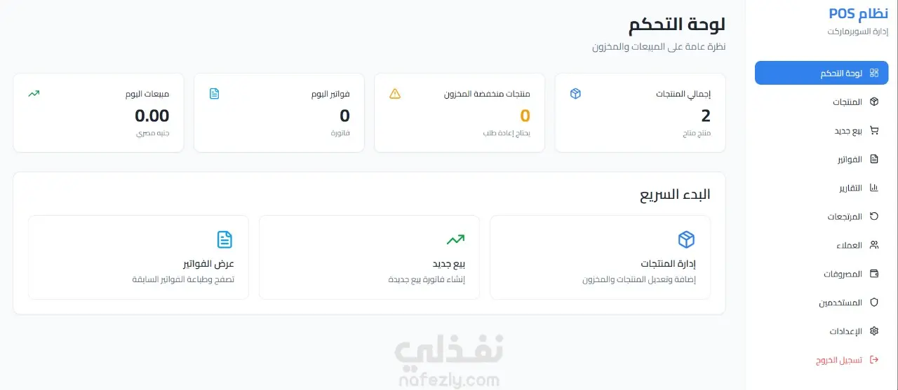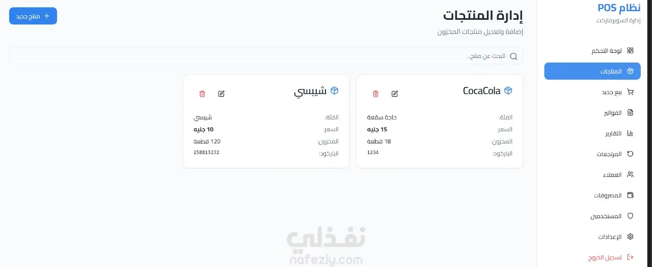 1️⃣ شاشة الكاشير (Cashier Screen) واجهة بيع سريعة وسهلة البحث عن المنتجات باسمها أو باركود إضافة الخصومات والعروض تحديد طريقة الدفع (كاش – فيزا – شبكة) فتح وإغلاق الشيفت طباعة الفواتير حراري تسجيل المرتجعات (Returns) 2️⃣ لوحة تحكم الإدارة (Admin Dashboard) إدارة المنتجات والأقسام إدارة الموظفين والصلاحيات إدارة المخزون (Stock Management) إضافة الموردين وفواتير التوريد إدارة الفروع (يدعم Multi-Branch) مراقبة المبيعات لحظة بلحظة تقارير شاملة (يومية – شهرية – سنوية) 3️⃣ نظام المخزون (Inventory System) تنبيهات بنقص الكميات التحكم في حد الطلب (Reorder Level) تكلفة المنتج – الربح – نسبة الهامش تقرير حركة كل صنف (Stock Movement) 4️⃣ نظام الفواتير والحسابات فواتير شراء فواتير بيع الضرائب سجلات العملاء والموردين أرصدة دائنة ومديونة كشف حساب عميل أو مورد 5️⃣ ميزات إضافية قوية دعم الباركود Barcode Scanner دعم طابعات الحراري Thermal Printer دعم الميزان الإلكتروني للمحلات (اختياري) نظام أدوار المستخدمين (Roles & Permissions) إمكانية الربط مع تطبيق موبايل نظام Backup ونسخ احتياطي دوري للبيانات