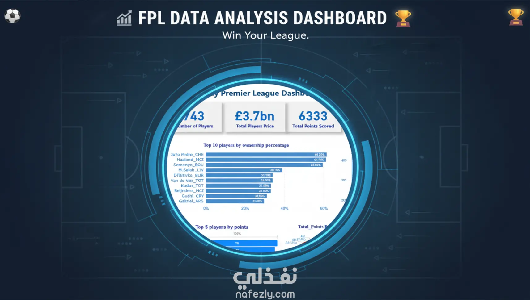 تطبيق مهارات سحب البيانات، معالجتها، وتحليلها، وتقديمها في داشبورد احترافية تساعد المستخدم (لاعب الفانتازي) على تحليل الأداء واختيار فريقه بفاعلية.