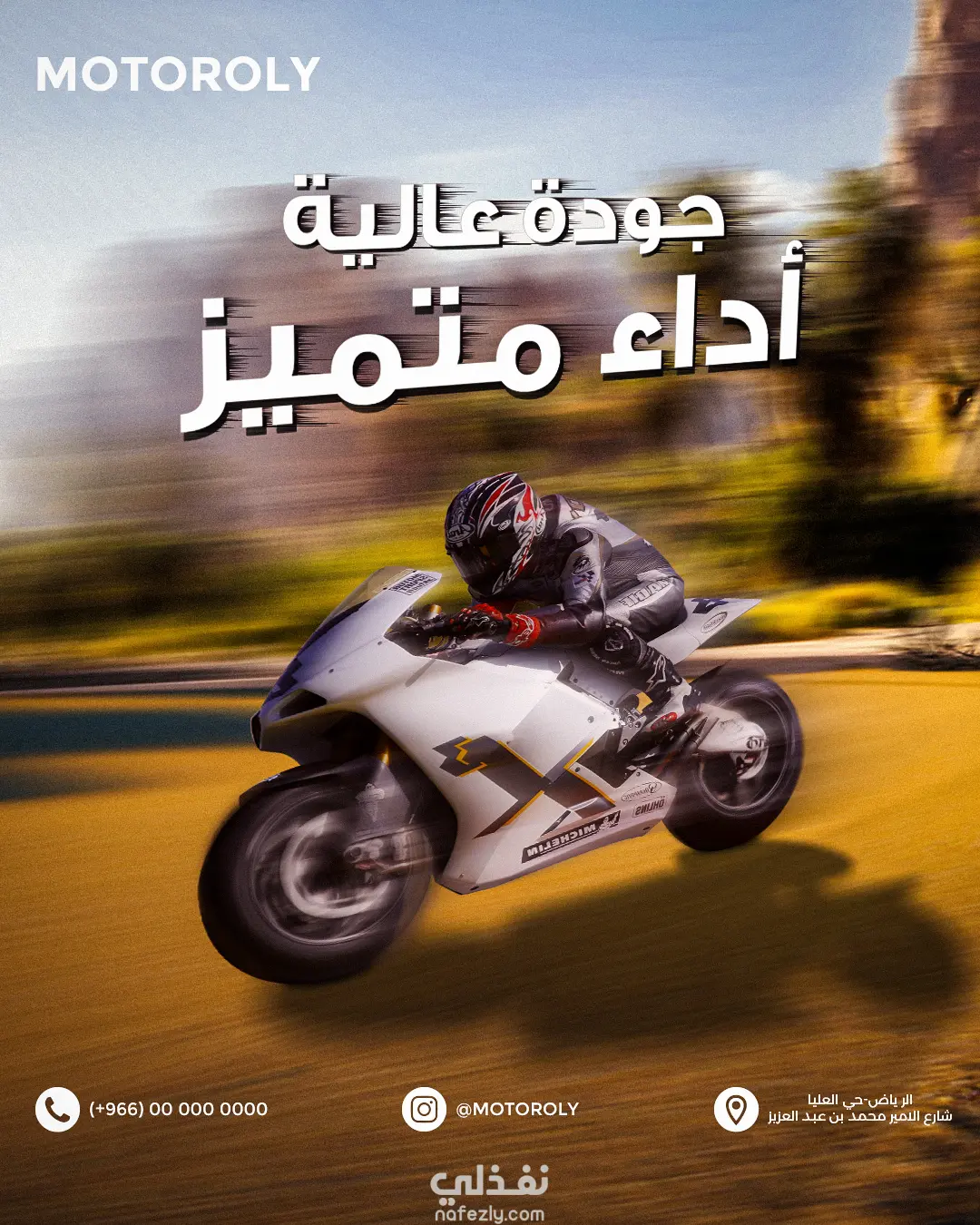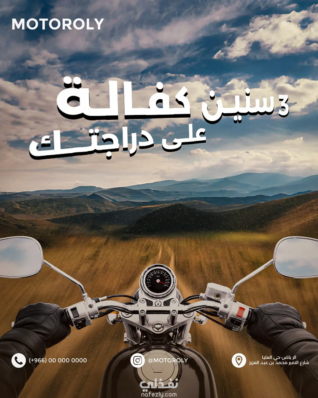 بوسترات سوشيال ميديا افتراضية لمتجر دراجات نارية بالسعودية