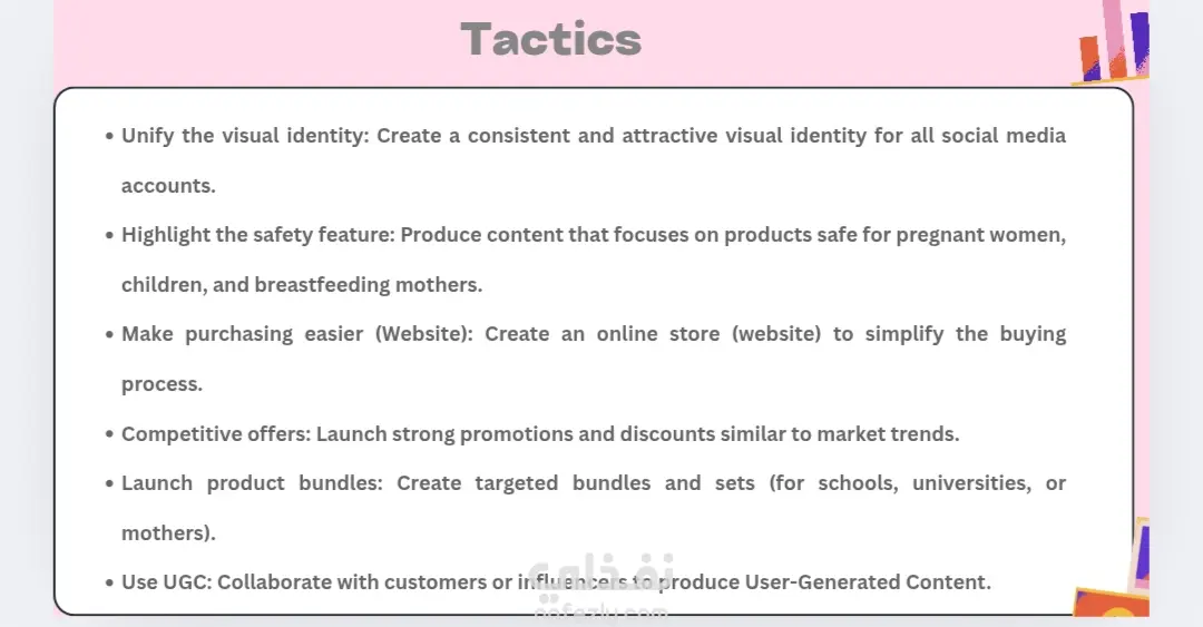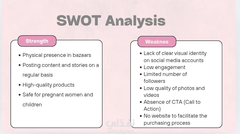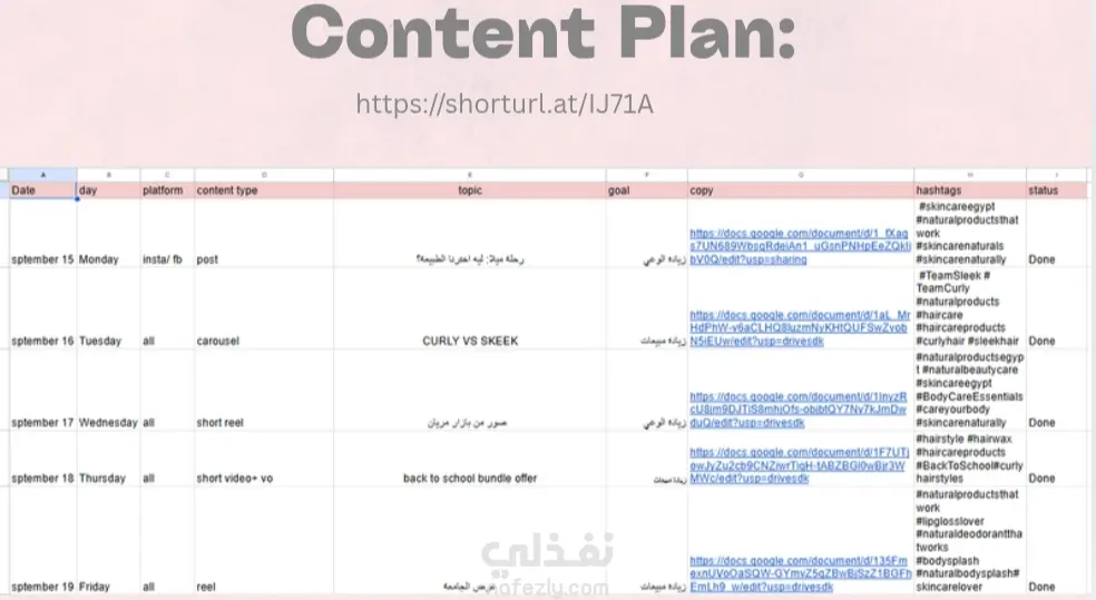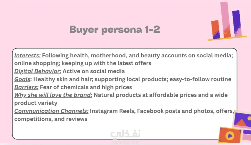 تم إنجاز خطة تسويقية متكاملة تحتوى على : 1-تحليل SWOT 2- تحليل المنافسين 3- هدف التسويق 4- الشريحة المستهدفة 5- محددات الاداء 6- الميزانية الموصى بها 7-خطة محتوى 8- متابعة وتدقيق مرفق جزء من الخطة .......