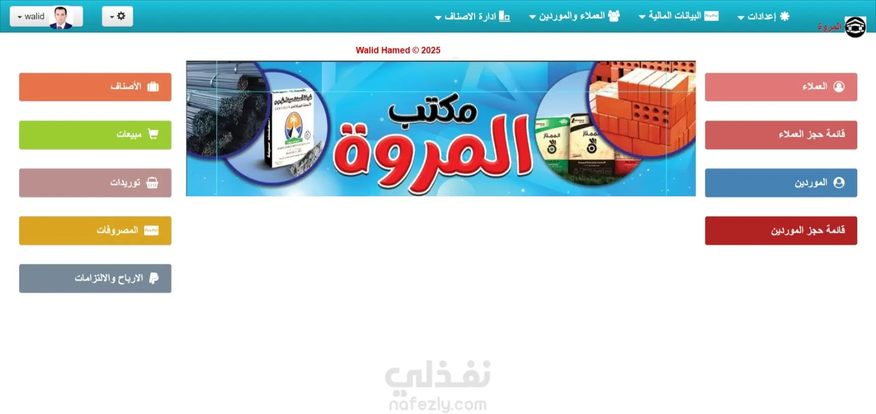 شرح برنامج إدارة "شركة المروة" هذا البرنامج هو نظام إدارة مخزون ومحاسبة أساسي (Inventory & Basic Accounting ERP) يركز على دورات المبيعات، التوريدات، وحجز الأصناف، مع تتبع دقيق للحسابات والالتزامات المالية. المكونات والوظائف الرئيسية: المجموعةالجداول الممثلةالوظيفة الرئيسية 1. الإدارة الأساسية للمخزونItems.csvإدارة بيانات الأصناف، وحدات القياس، ومجموعات الأصناف (حديد، أسمنت، تشطيبات)، وتتبع الرصيد الحالي وحد الأمان لتفادي النقص. 2. إدارة العملاء والموردينCustomers.csv، Suppliers.csvتسجيل بيانات الاتصال وتتبع الرصيد المالي المبدئي (المبلغ، المسحوبات، الباقي) لكل من العملاء والموردين بشكل مستقل. 3. دورة التوريد (المشتريات)Supplies.csv، Payments Supply.csvتسجيل فواتير التوريد، تتبع الكمية الموردة، السعر، الإجمالي، والمدفوعات. جدول المدفوعات يتيح تسجيل دفعات متعددة على فاتورة التوريد الواحدة لتتبع الديون (المديونية والباقي). 4. دورة المبيعاتSales.csv، Payments sales.csvتسجيل فواتير المبيعات، تتبع الكمية المباعة، السعر، الإجمالي، والمدفوعات. جدول مدفوعات المبيعات يتيح تسجيل دفعات متعددة على فاتورة البيع الواحدة لتتبع المستحقات على العملاء. 5. الحجزBooking Customers.csv، Booking Suppliers.csvوظيفة متقدمة تسمح بحجز كميات من الأصناف للعملاء أو من الموردين مسبقًا. يتم تتبع الكمية المطلوبة، والمبلغ، والكمية المنصرفة، والباقي. 6. المحاسبة والمصروفاتExpenses.csv، تكلفة.csvتسجيل المصروفات العامة للشركة (إيجارات، خدمات... إلخ) وتتبع حالتها المالية (المبلغ المطلوب، المدفوعات، الباقي). يحتوي ملف تكلفة.csv على ملخص تكلفة المشروع وتوزيعه على النماذج المختلفة. الخلاصة: البرنامج مصمم لتوفير رؤية واضحة لحالة المخزون، وتتبع حركة المبيعات والمشتريات، وإدارة ديون الشركة ومستحقاتها بشكل دقيق. هل تود البدء في تصميم جزء محدد من واجهة المستخدم، مثل شاشة إدارة الأصناف أو دورة المبيعات؟
