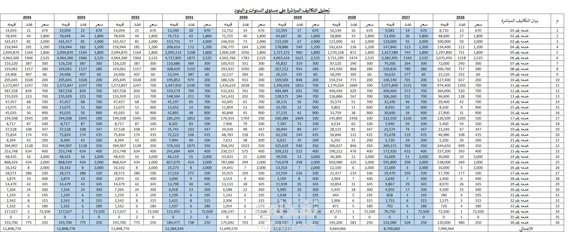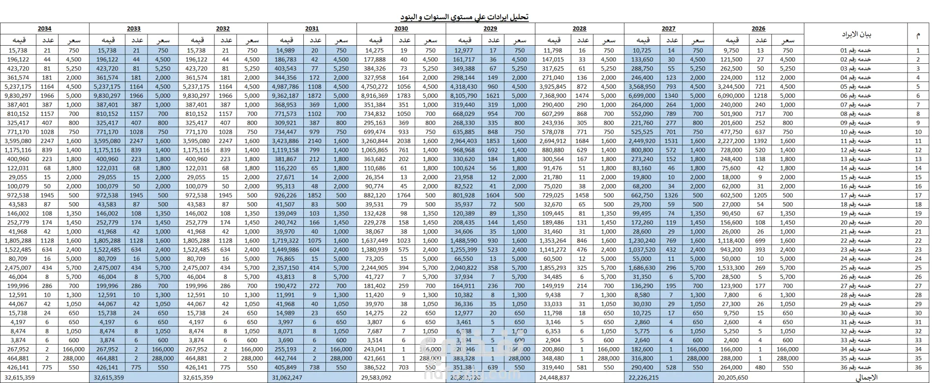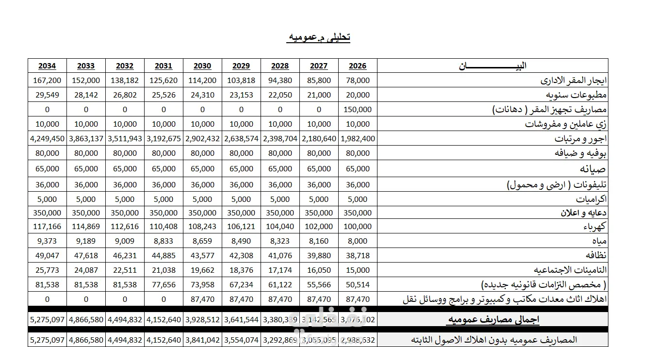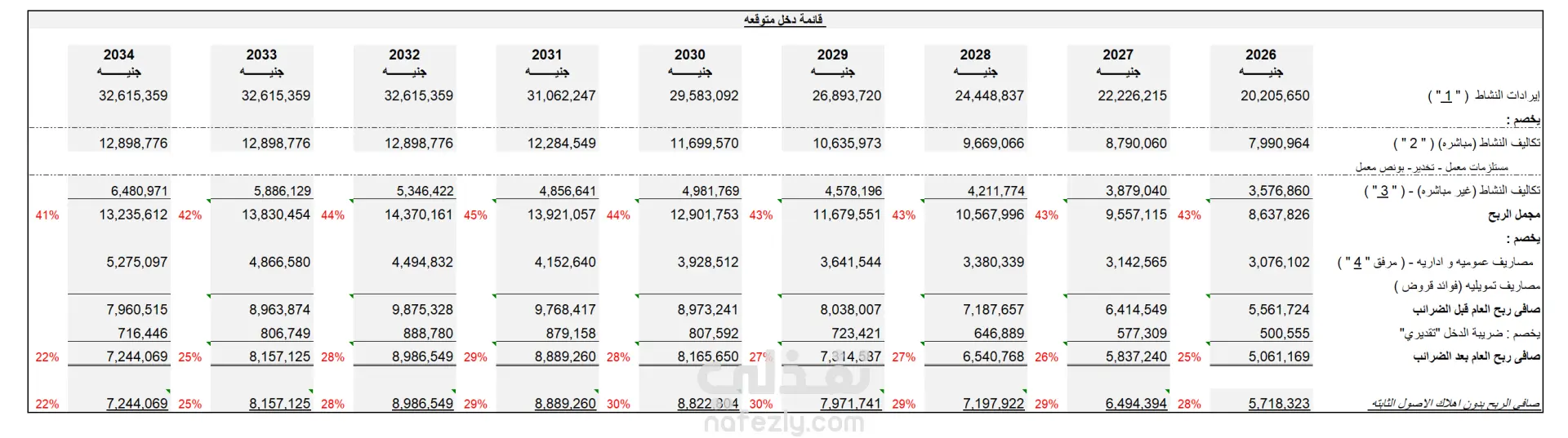 عمل دراسه ماليه متوقعه ل 9 سنوات لمشروع خدمى