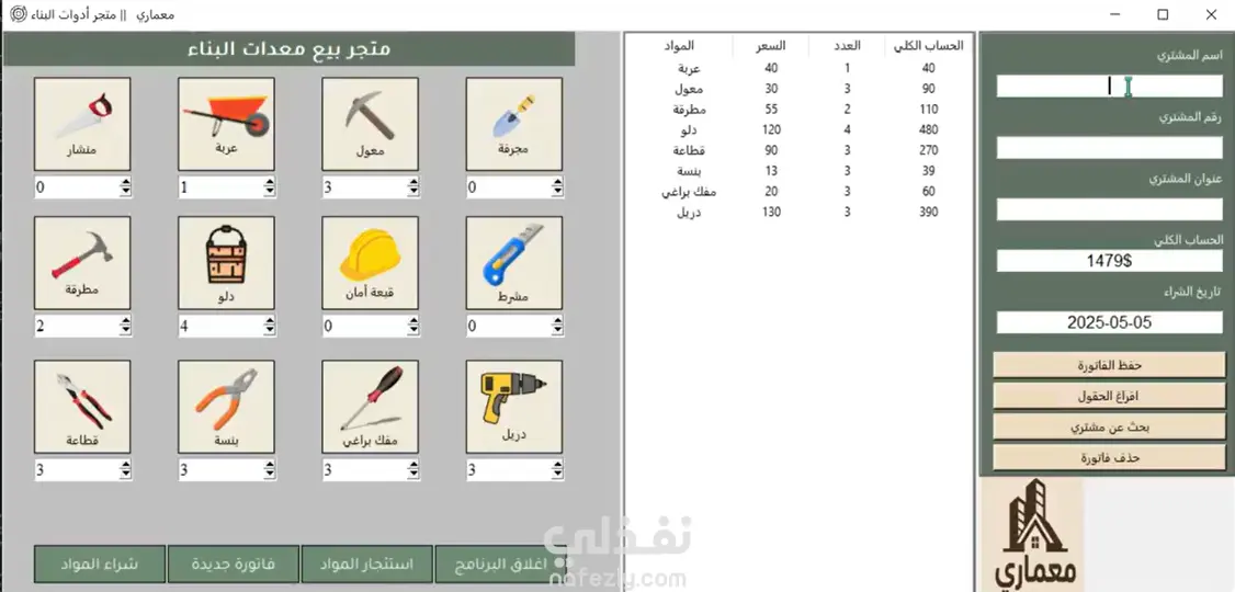 إضافة بيانات العميل (الاسم – الرقم – العنوان – التاريخ).