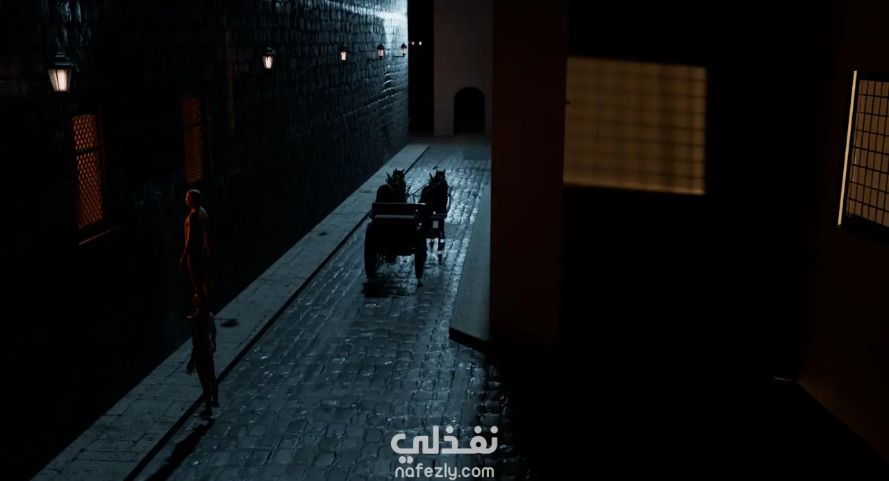 اعتمدت في الإضاءة على أسلوب سينمائي يبرز التناقض بين الضوء الدافئ الصادر من النوافذ والضوء البارد في منتصف الزقاق، بهدف خلق عمق بصري يعكس أجواء التوتر والهدوء التي تميز مشاهد الفيلم.