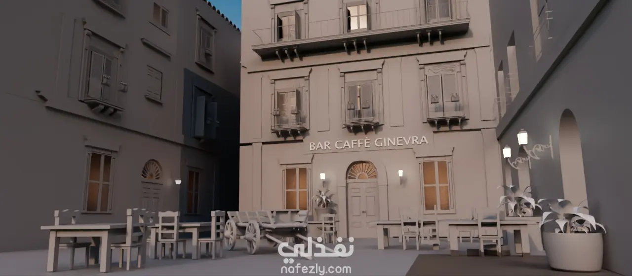 قمت بنمذجة بيئة ثلاثية الأبعاد 3D مستوحاة من أجواء لعبة Mafia، حيث صممت شارعًا إيطاليًا قديمًا يضم مبنى مقهى “Bar Caffè Ginevra” مع التفاصيل المحيطة به مثل النوافذ الخشبية، الشرفات، الطاولات، العربات، والإضاءة الخارجية. العمل يعتمد بالكامل على مودلينج من الصفر مع التركيز على الأسلوب الكلاسيكي للعمارة الإيطالية وتوزيع الأثاث بما يخدم أجواء اللعبة. تم إعداد المشهد بدقة عالية ليكون جاهزًا للاستخدام في الألعاب، المشاهد السينمائية، أو العروض المرئية، مع مراعاة الـ scale الواقعي وتوزيع العناصر بطريقة تضيف عمقًا للمشهد