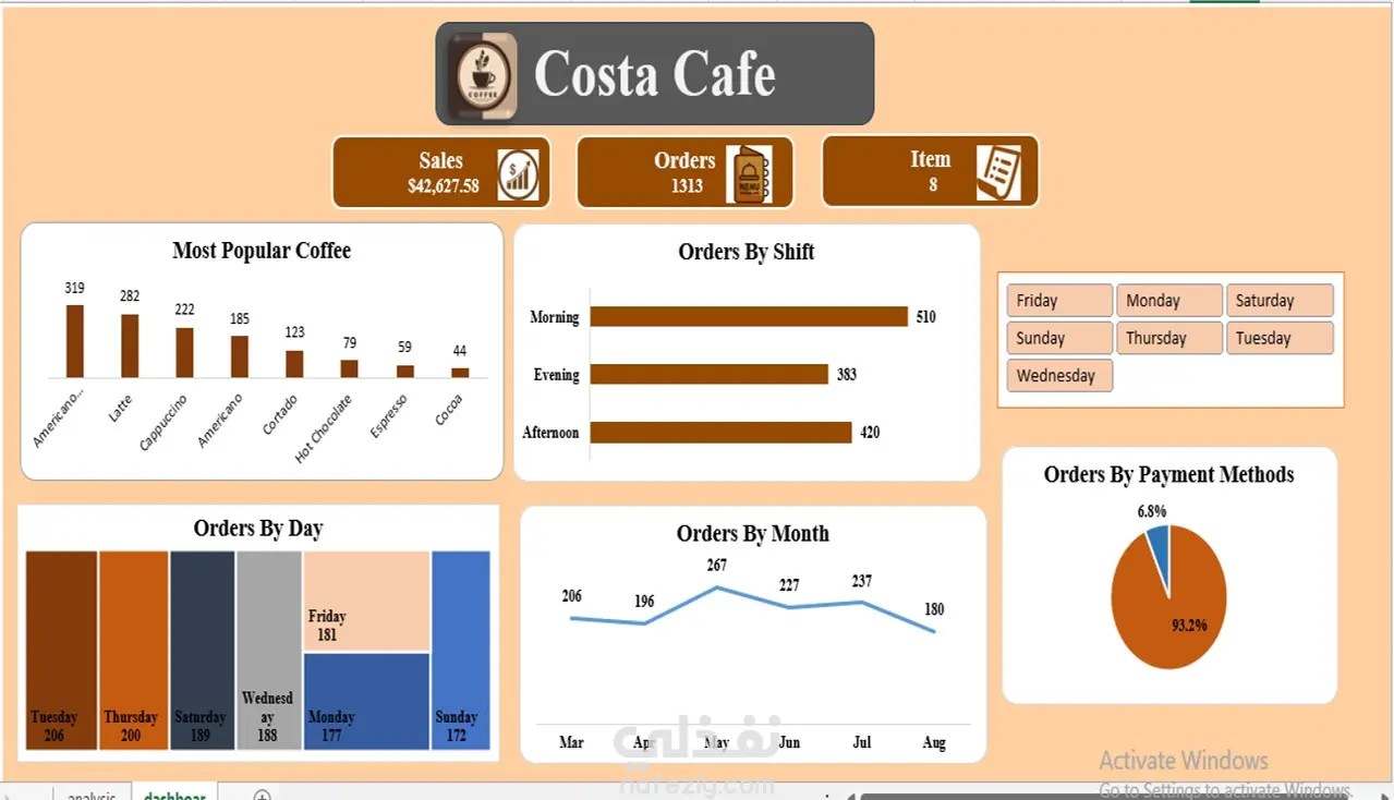 تحليل مبيعات مقهى