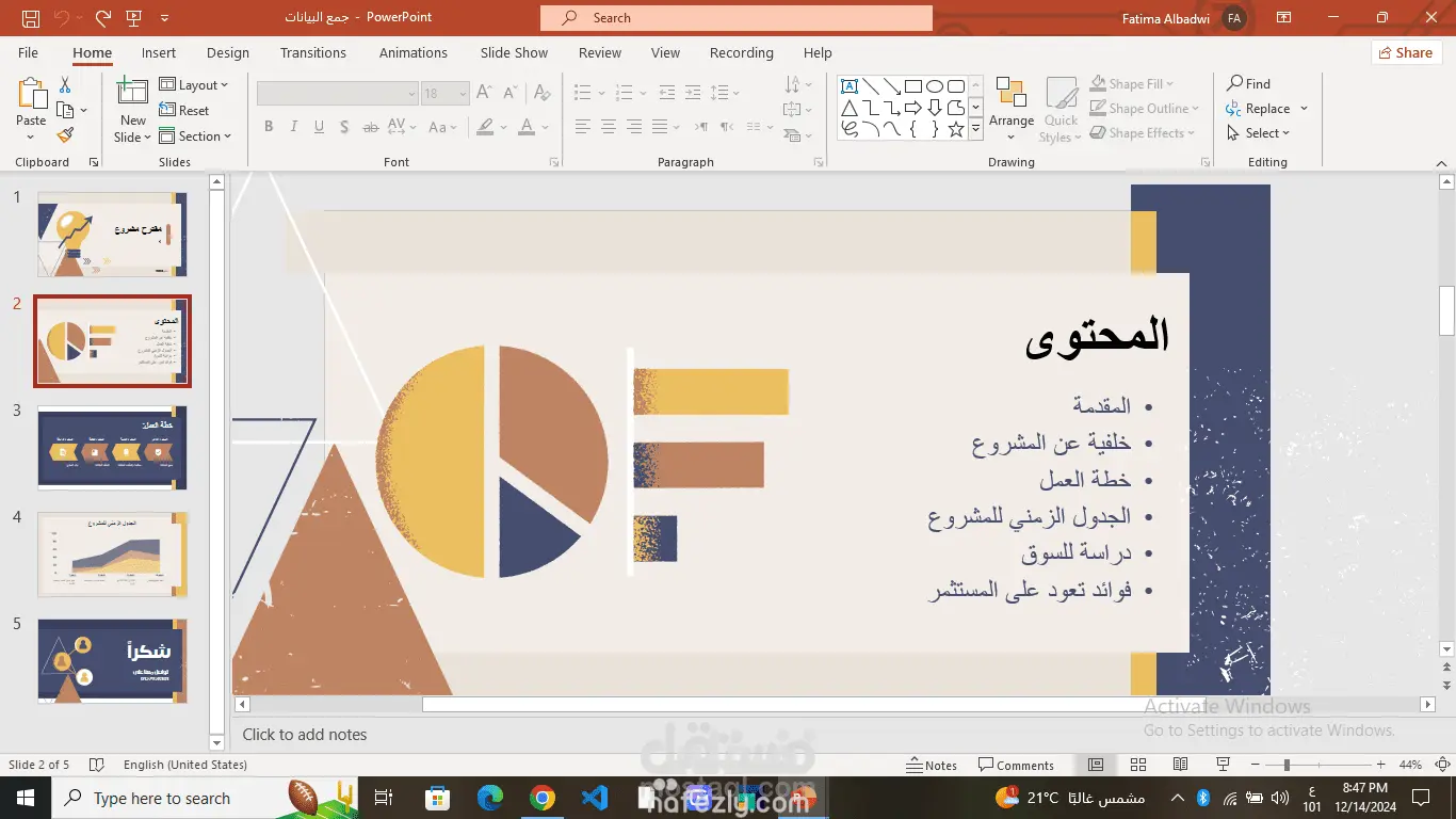 هل تبحث عن عرض تقديمي يجذب انتباه جمهورك ويترك انطباعًا قويًا؟ أنا هنا لأقدم لك خدمة تصميم عروض تقديمية احترافية تناسب جميع احتياجاتك، سواء كانت لأغراض تعليمية، تسويقية، اجتماعات عمل، أو حتى مشاريع شخصية. ماذا سأقدم لك؟ تصميم عرض تقديمي أنيق ومبتكر يعكس هويتك أو هوية شركتك. استخدام ألوان وصور متناسقة تضيف لمسة احترافية. إضافة رسومات بيانية وجداول توضيحية بطريقة بسيطة وجذابة. تنسيق النصوص والعناوين بأسلوب احترافي يسهل القراءة. تصميم 3-8 شرائح قابلة للتعديل لتناسب احتياجاتك المستقبلية. تسليم العرض بصيغ مختلفة (PPTX، PDF). لماذا تختار هذه الخدمة؟ خبرة في تصميم العروض باستخدام PowerPoint وبرامج أخرى. الاهتمام بأدق التفاصيل لتقديم عرض متكامل إمكانية التعديل بناءً على ملاحظاتك لضمان رضاك التام. لمن تناسب هذه الخدمة؟ الشركات التي ترغب في عرض أفكارها أو تقاريرها بشكل احترافي. الطلاب الذين يحتاجون إلى عروض تقديمية متميزة لمشاريعهم. أصحاب الأعمال الصغيرة