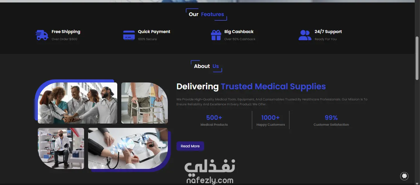 الموقع يدعم الوضع الليلي ويعتمد على إعادة استخدام الكود لتقليل التكرار وزيادة الأداء.
