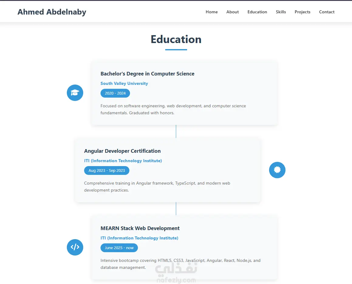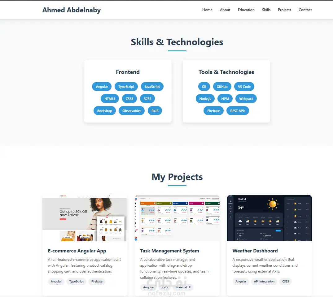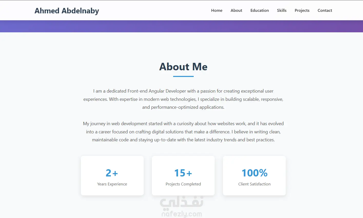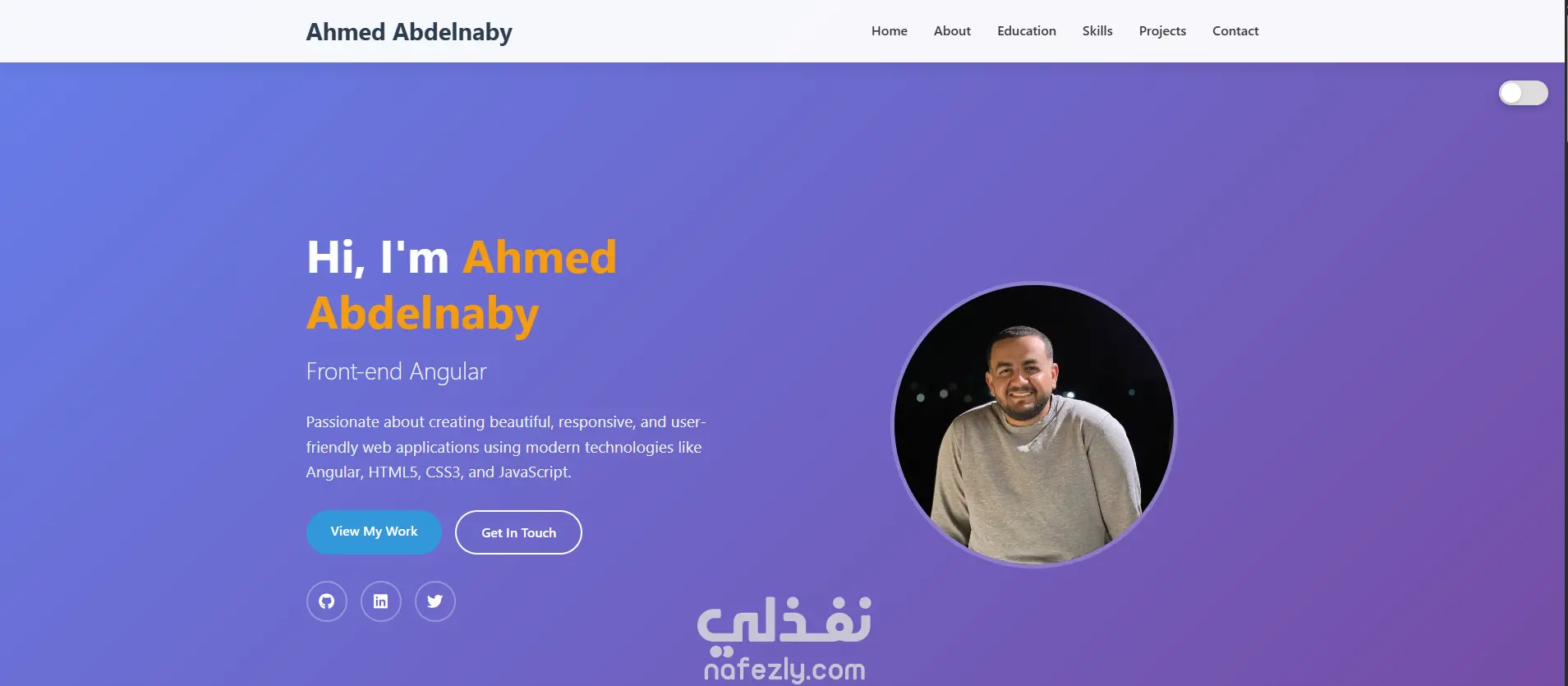 هذا موقع بورتفوليو احترافي لأحمد عبد النبي كمطور Front-end إليك وصف شامل للموقع: الهدف من الموقع عرض المهارات والمشاريع والخبرات بطريقة احترافية وجذابة لأصحاب العمل والعملاء المحتملين.