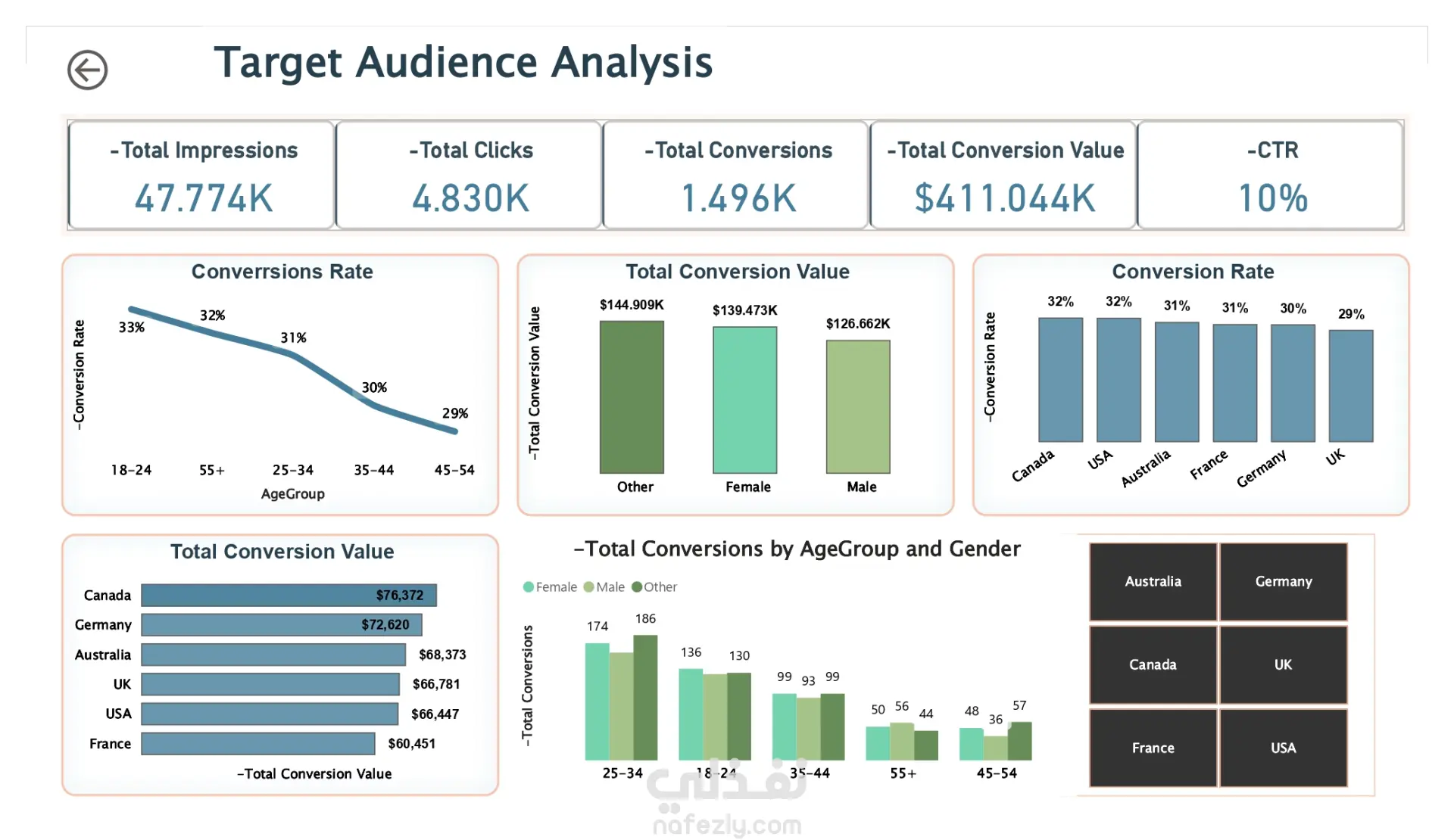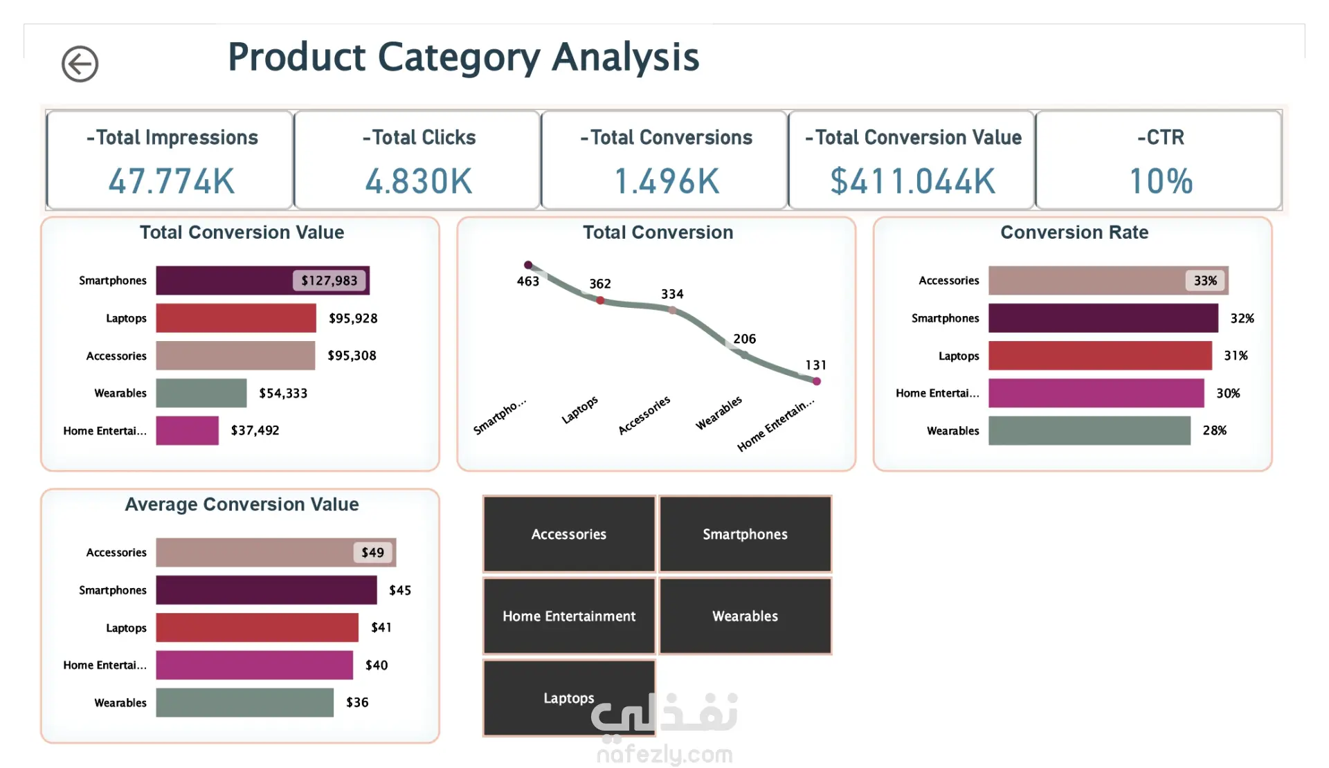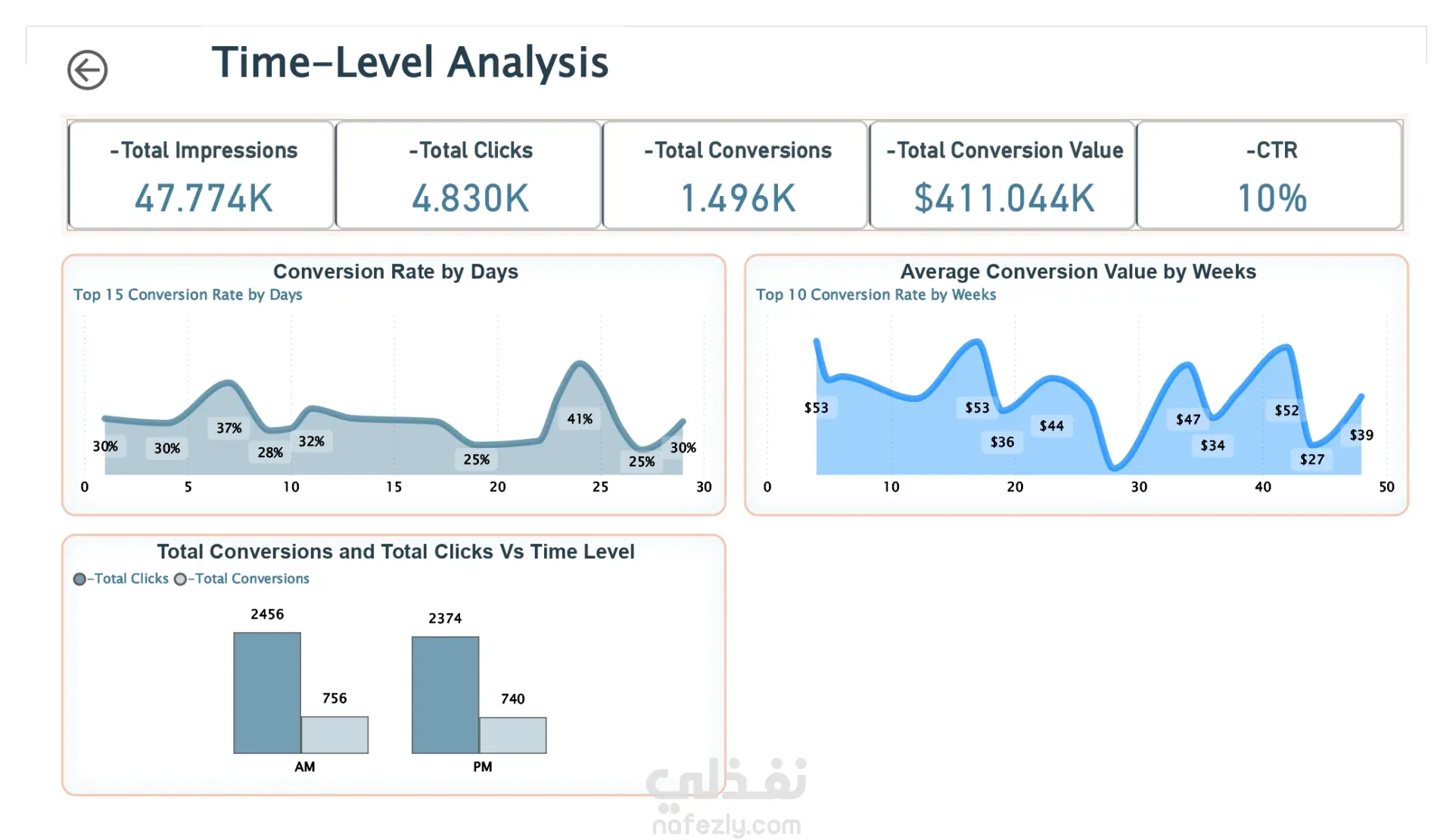 - تحليل مفصل يشمل تحليل منصات الإعلانات - تحليل الجمهور المستهدف - تحليل فئات المنتجات - تحليل الحملات الإعلانية - التحليل الزمنى.