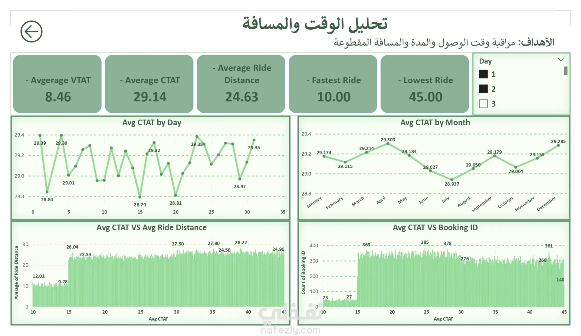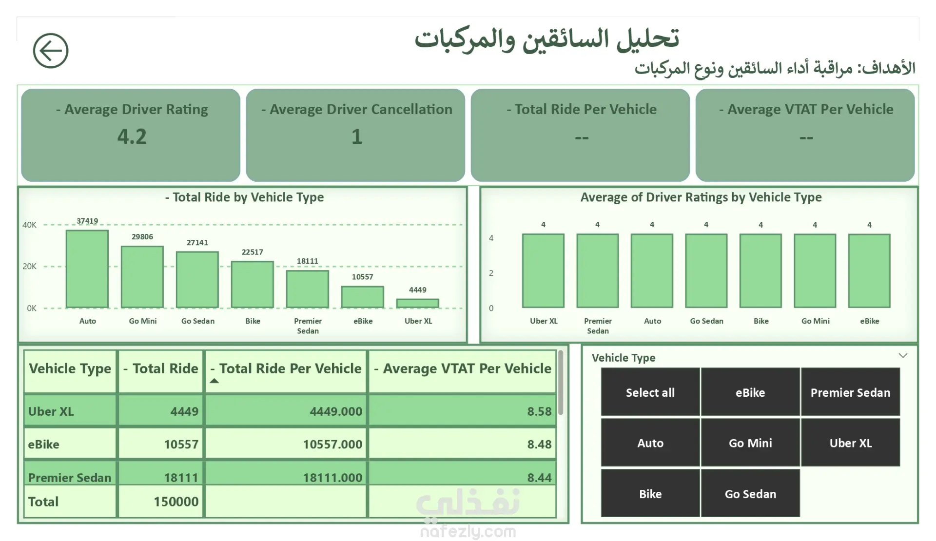 - تحليل مفصل يشمل ( لمحة عامة عن الأداء - تحليل الرحلات - تحليل العملاء - تحليل للمركبات والسائقين - تحليل المسافة والوقت - تحليل الإيرادات والدفع).