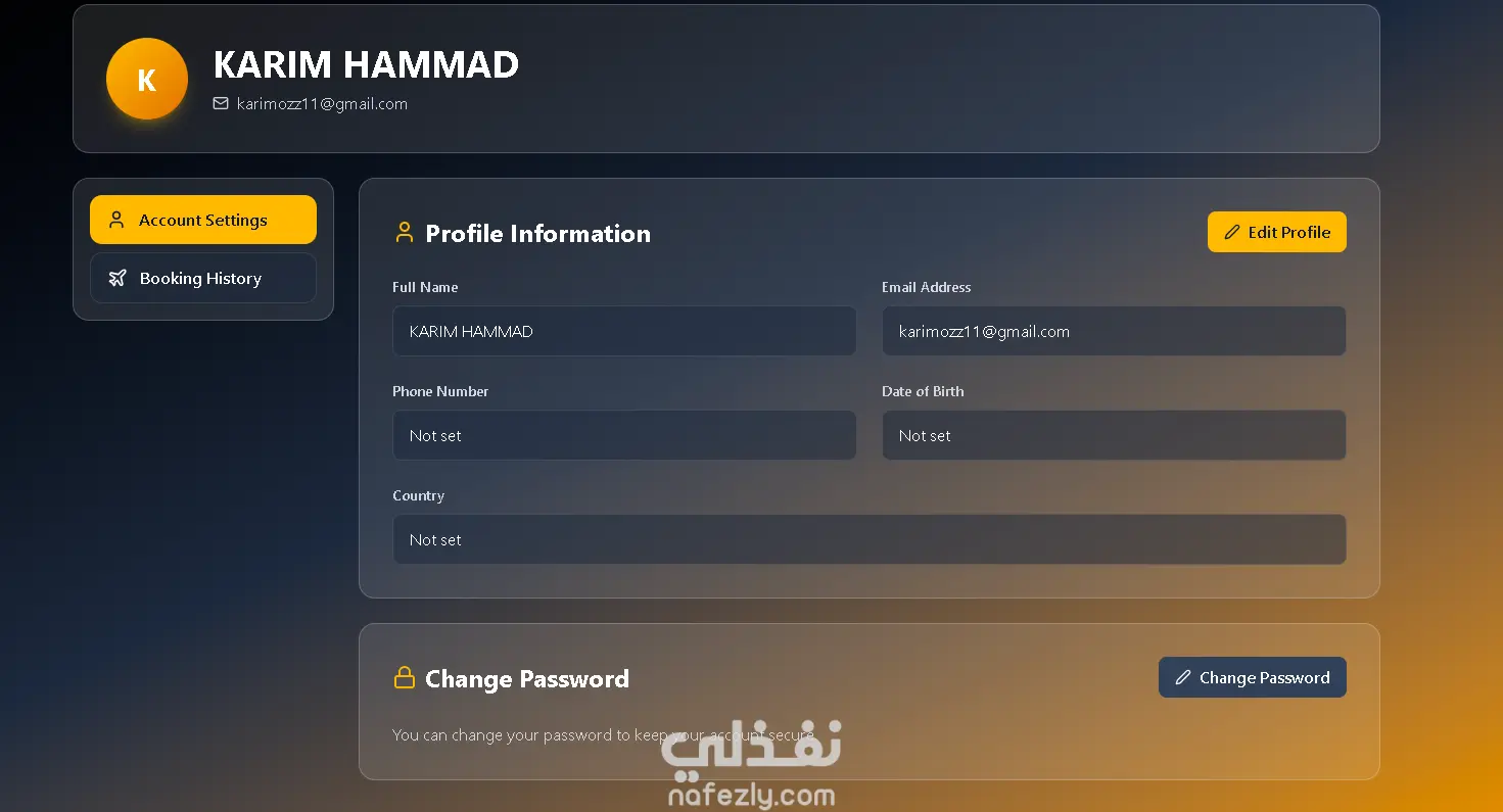 عملت على موقع حجز رحلات طيران لأي مستخدم و ربط قواعد البيانات الخاصة بالرحلات بالموقع مما اتاح للمستخدم تصفح الرحلات و الحجز بكل سهولة عملت بأستخدام React و Tailwind, Node.js