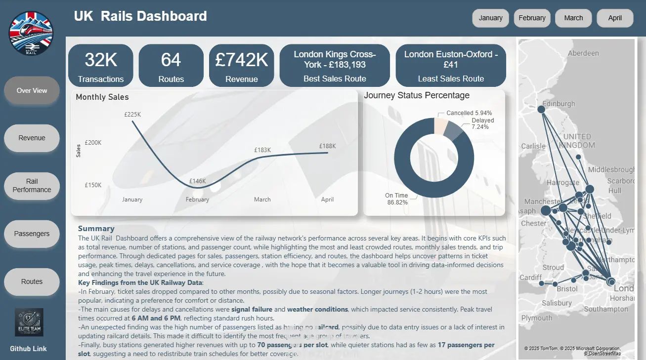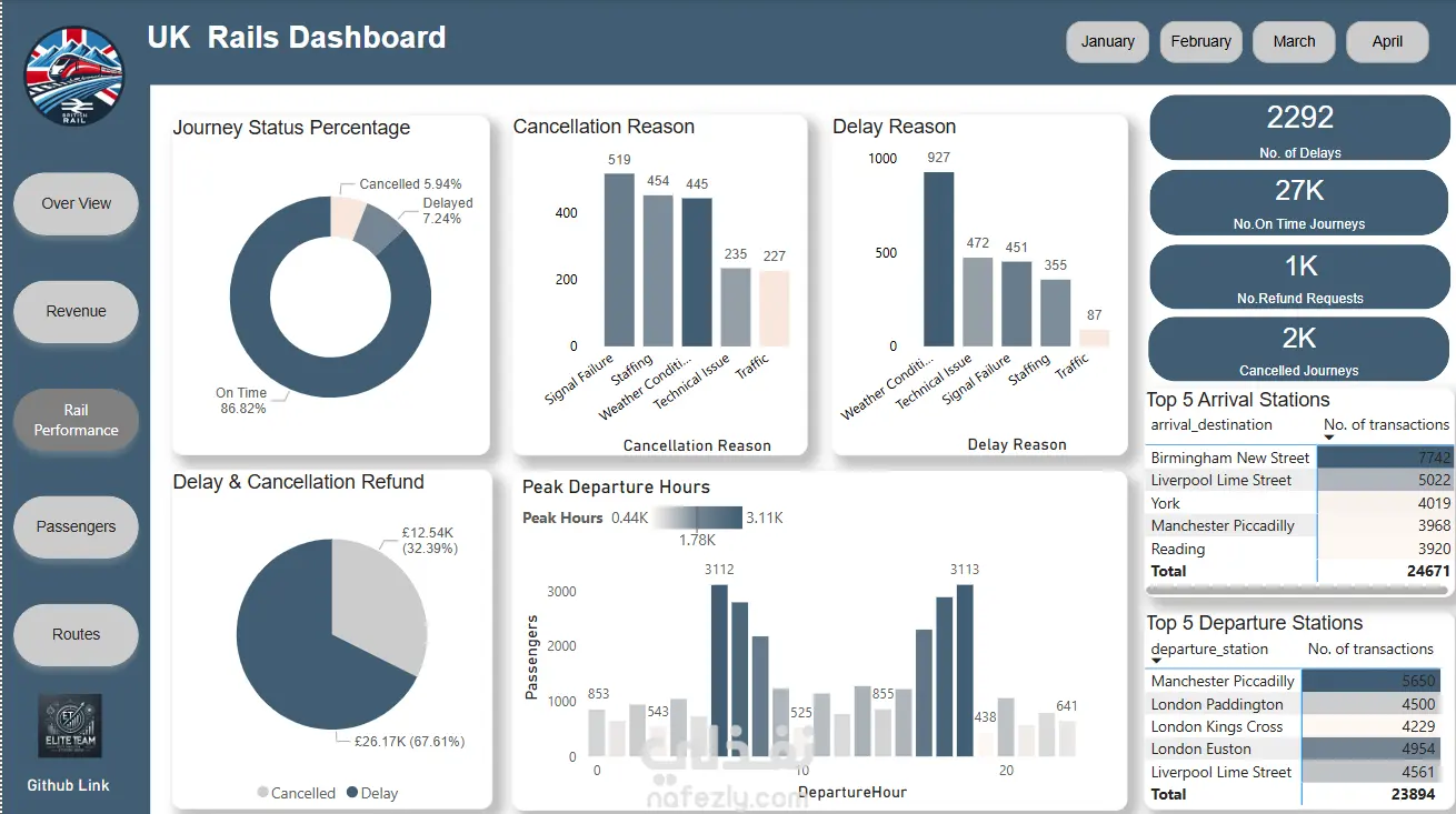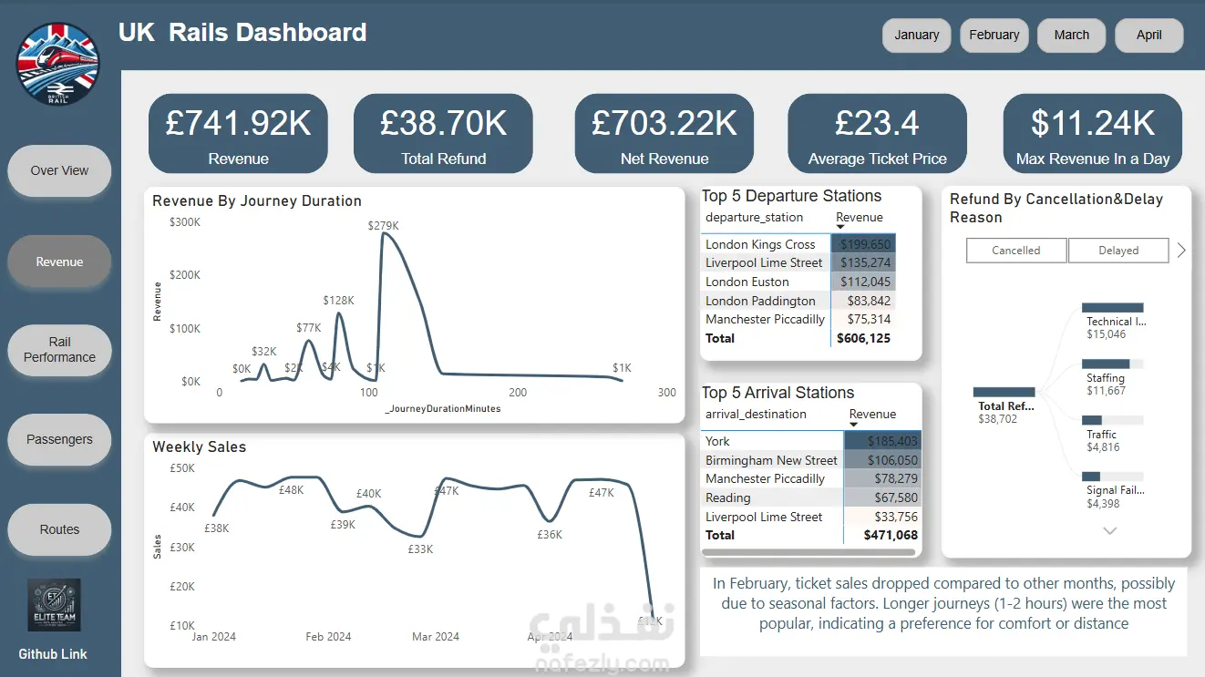 تحليل البيانات وعمل داشبورد احترافيه لمشروع خطوط القطارات الانجليزيه