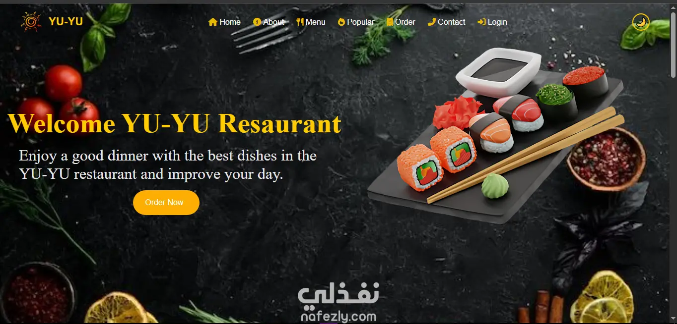 موقع لمطعم اكل يبانى بشكل وتفاصيل الثقافه اليابانيه