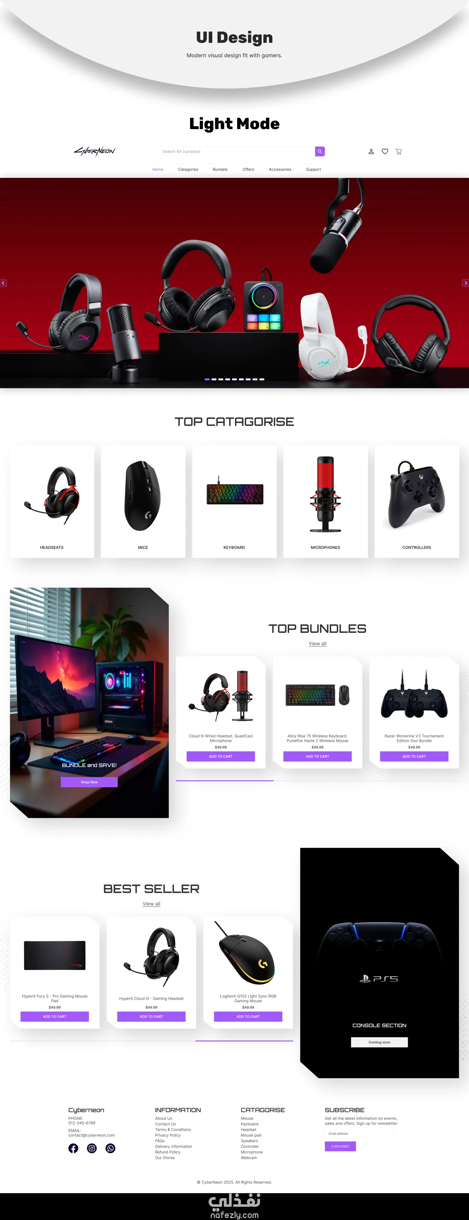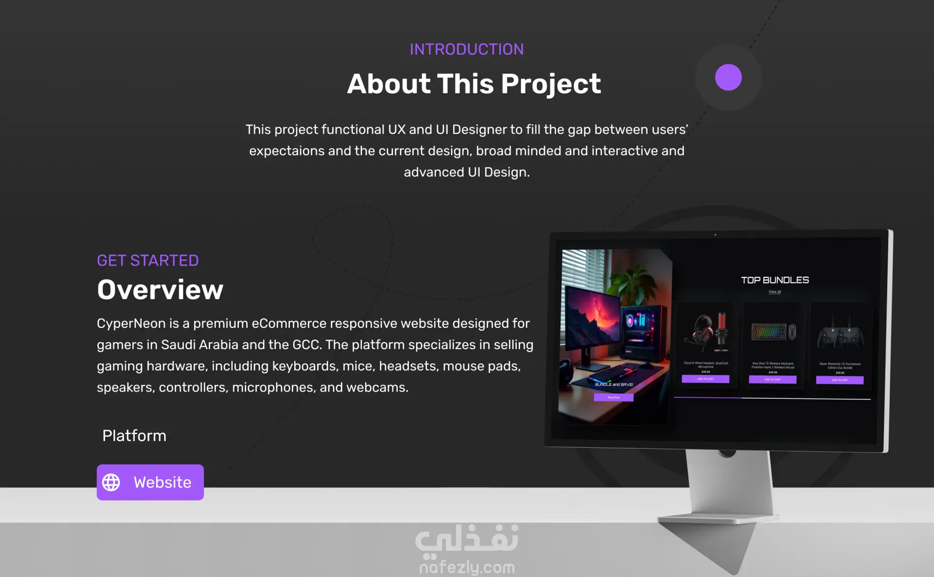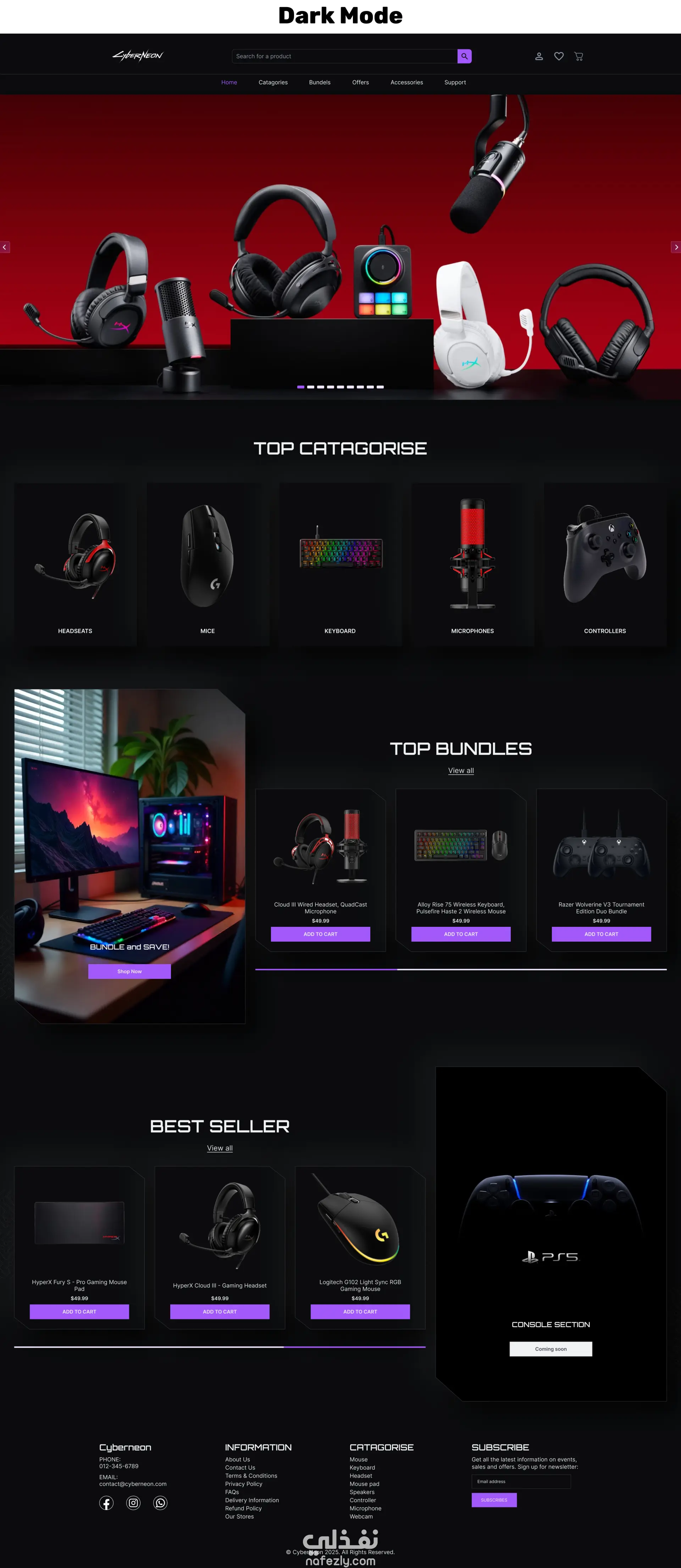 تصميم موقع تجارة إلكترونية متميز ومتجاوب، مُصمّم خصيصًا للَّاعبين في السعودية ودول الخليج. يختصّ المنصّة في بيع مختلف معدات وأجهزة الألعاب.
