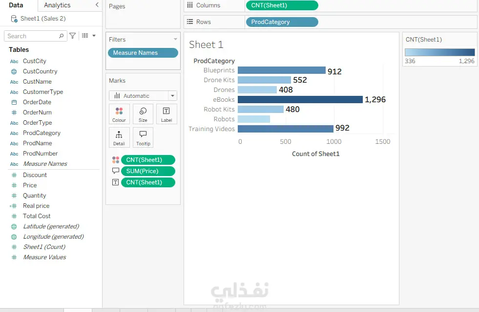 تحليل بيانات مبيعات موقع بيع مستلزمات رياضية ببرنامج تابلوه