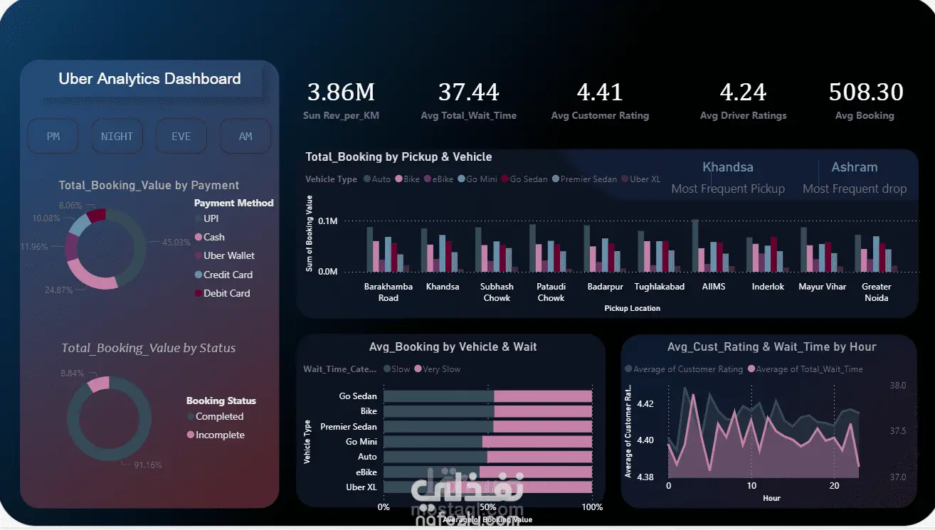 - متوسط وقت الانتظار وتقييم العملاء والسائقين