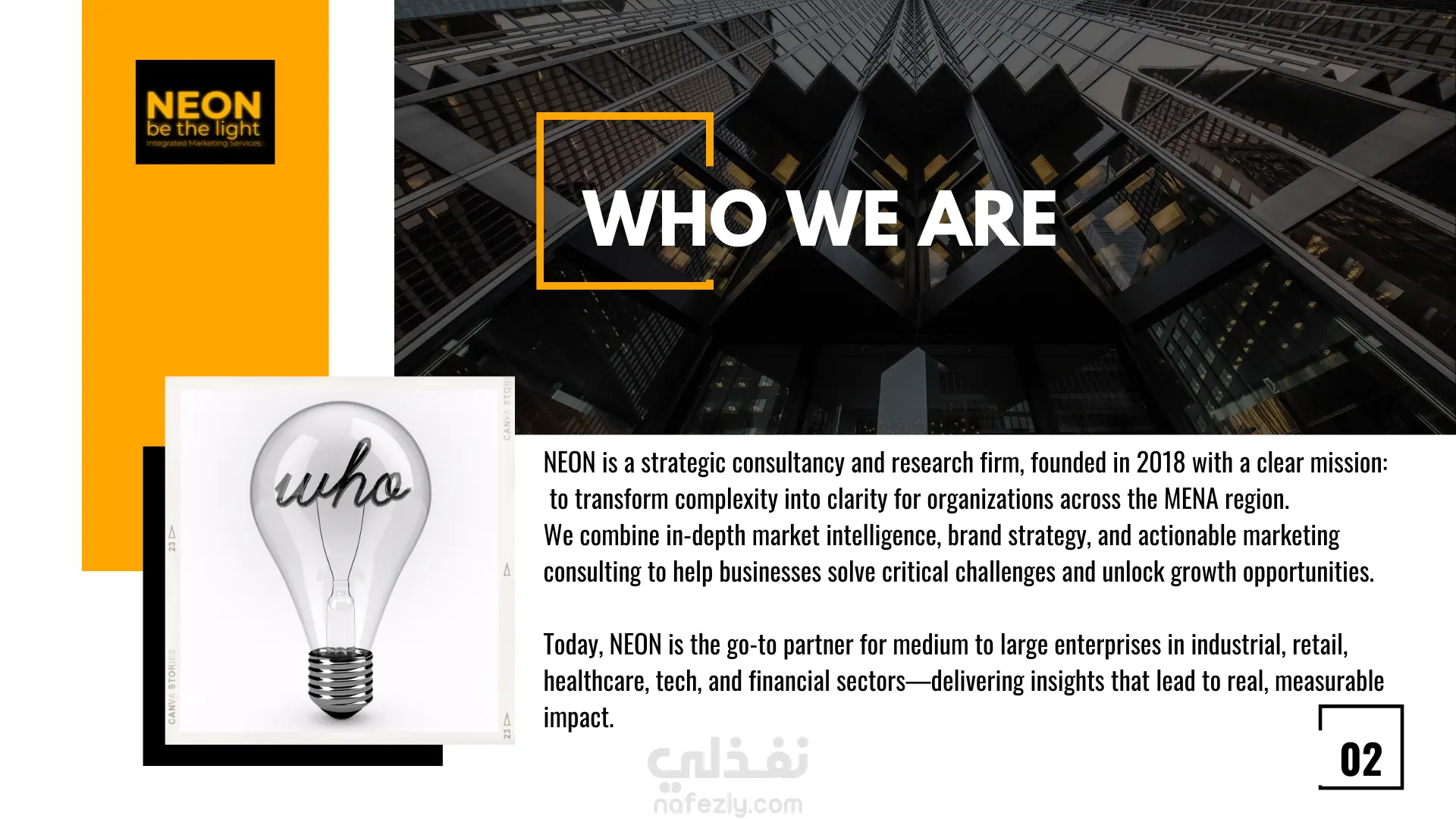 إعداد ملف تعريفي احترافي لشركة "نيون" – شركة متخصصة في الحلول التسويقية والتحول الرقمي