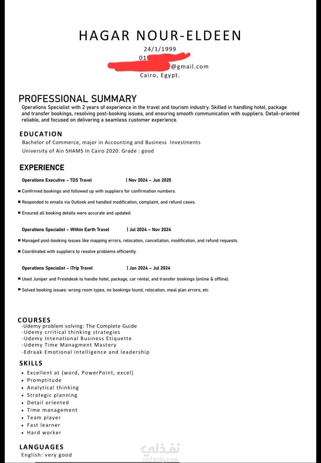 سيرة ذاتية احترافية وcover letter و resume ,cv